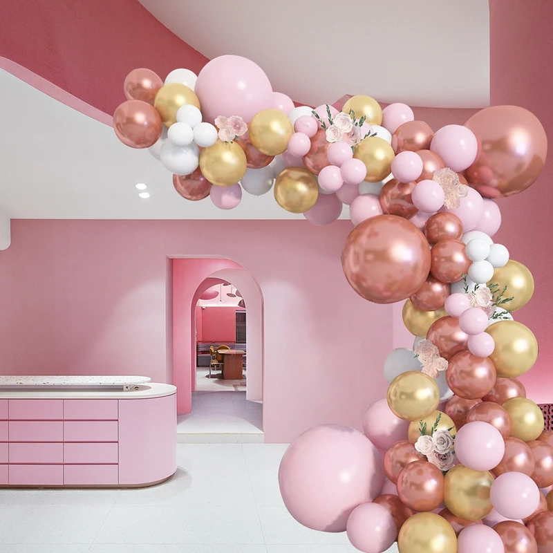 Розовый макарон, металлические воздушные шары, гирлянда, раньше, дл...