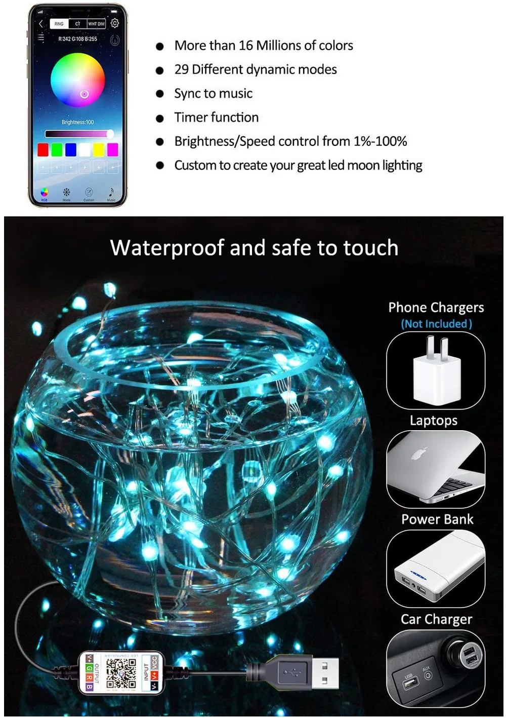 Характеристики:* 1. Выберите предварительно изготовленный легкий дизайн и анимацию из приложения или даже запрограммируйте свой собственный дизайн, чтобы соответствовать цветам ваших любимых спортивных команд, а также уникальной анимации и многого другого.* 2. Управление приложением: все огни могут управляться удаленно с помощью приложения, доступного в приложении iOS Store.* 3. Быстрые настройки: Подключение Wi-Fi. Светильник s может быть настроен с вашим локальным Wi-Fi дома/офиса, поэтому вам не нужно устанавливать соединение каждый раз, когда вы используете светильник.* 4. Устойчивость к погодным условиям: продукты имеют защиту IP44, что делает их идеальными для использования в помещении и на открытом воздухе.* 5. Вы можете использовать различные режимы струнных огней в зависимости от различных случаев.Спецификация:Уровень защиты: IP65Световой поток: 3 (лм)Метод управления: пульт дистанционного управленияЦветовая температура: 3000 (K)Повод для ношения: Рождественское украшениеСрок службы: 50000 (H)Входное напряжение: 5 ВМатериал корпуса: медная проволокаДиапазон использования: праздничное украшениеСветильник Цвет: RGB полный цветХарактеристики: 2 метра 20 огней, 5 метров 50 огней, 10 метров 100 огнейПосылка включает в себя:1 комплект из светодиодный лампы в форме свечи (мобильный телефон не прилагаются)Примечание:1. Все изображения были профессионально цвет калиброванная, но из-за различных условий окружающей среды светильник и расхождений в настройках экрана устройства настройки, поэтому могут быть некоторые отклонения между изображениями и объектами в полном соответствии с изображением. Пожалуйста, поймите2. Данные измеряются вручную, могут быть некоторые отклонения, но это не влияет на использование.