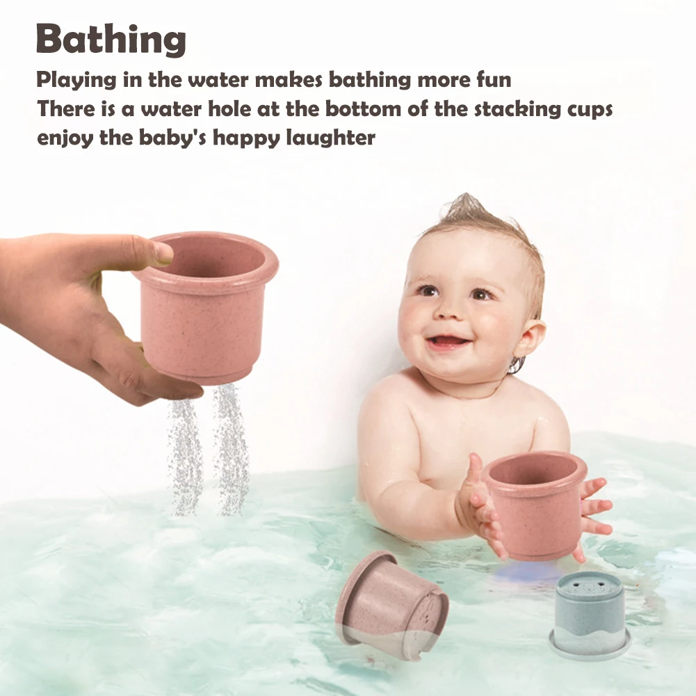 6/8 шт забавная Пшеничная солома песочные часы штабелирование чашки строительные блоки ранняя образовательная Детская ванна стек кольцо башня интеллект игрушки случайный цвет