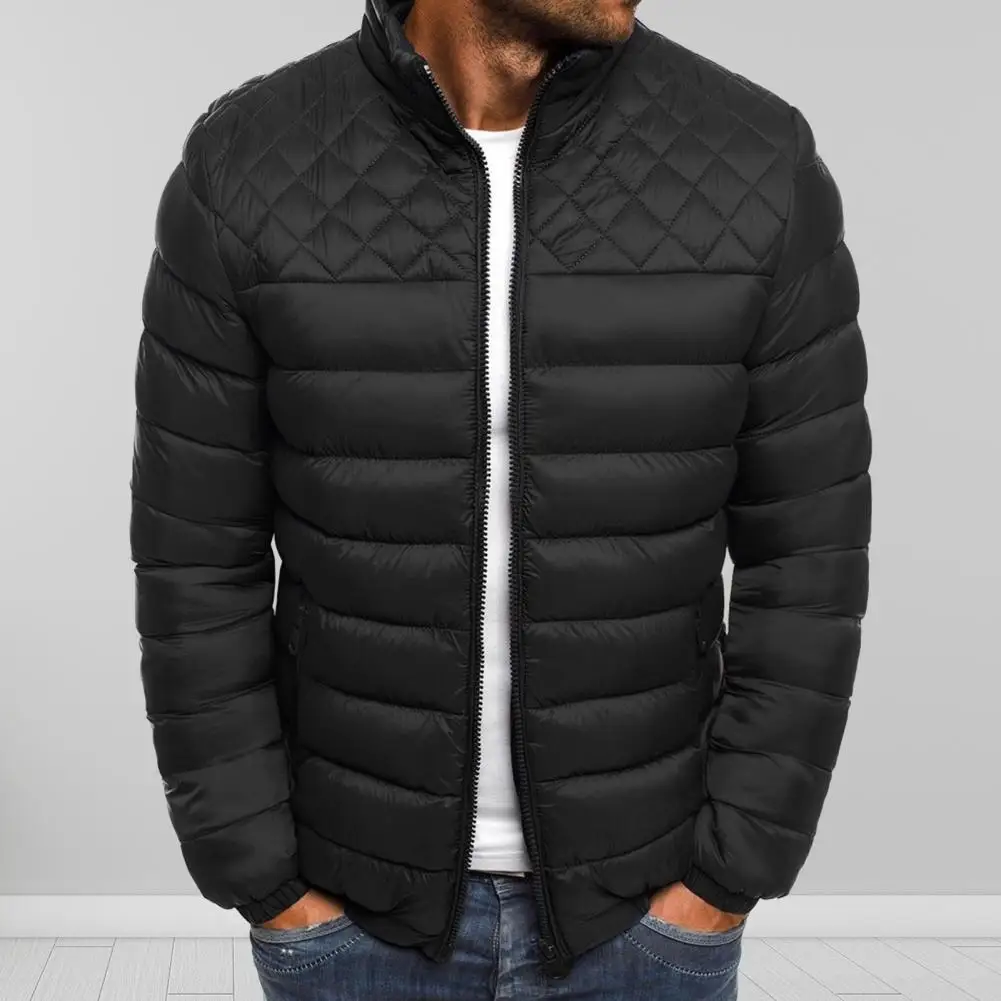 Базовая мужская куртка 2021, однотонная универсальная куртка с воротником-стойкой, осенне-зимнее Теплое повседневное клетчатое Стеганое пальто для повседневной носки