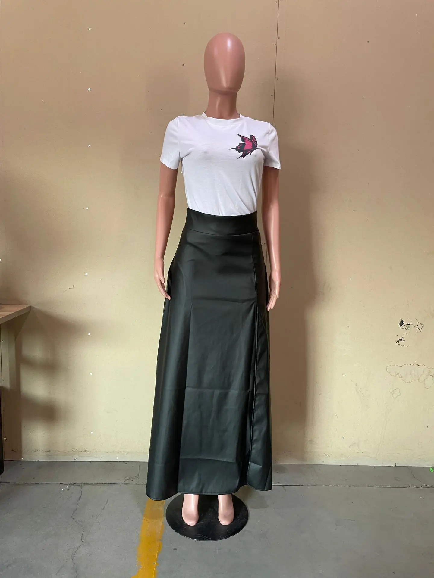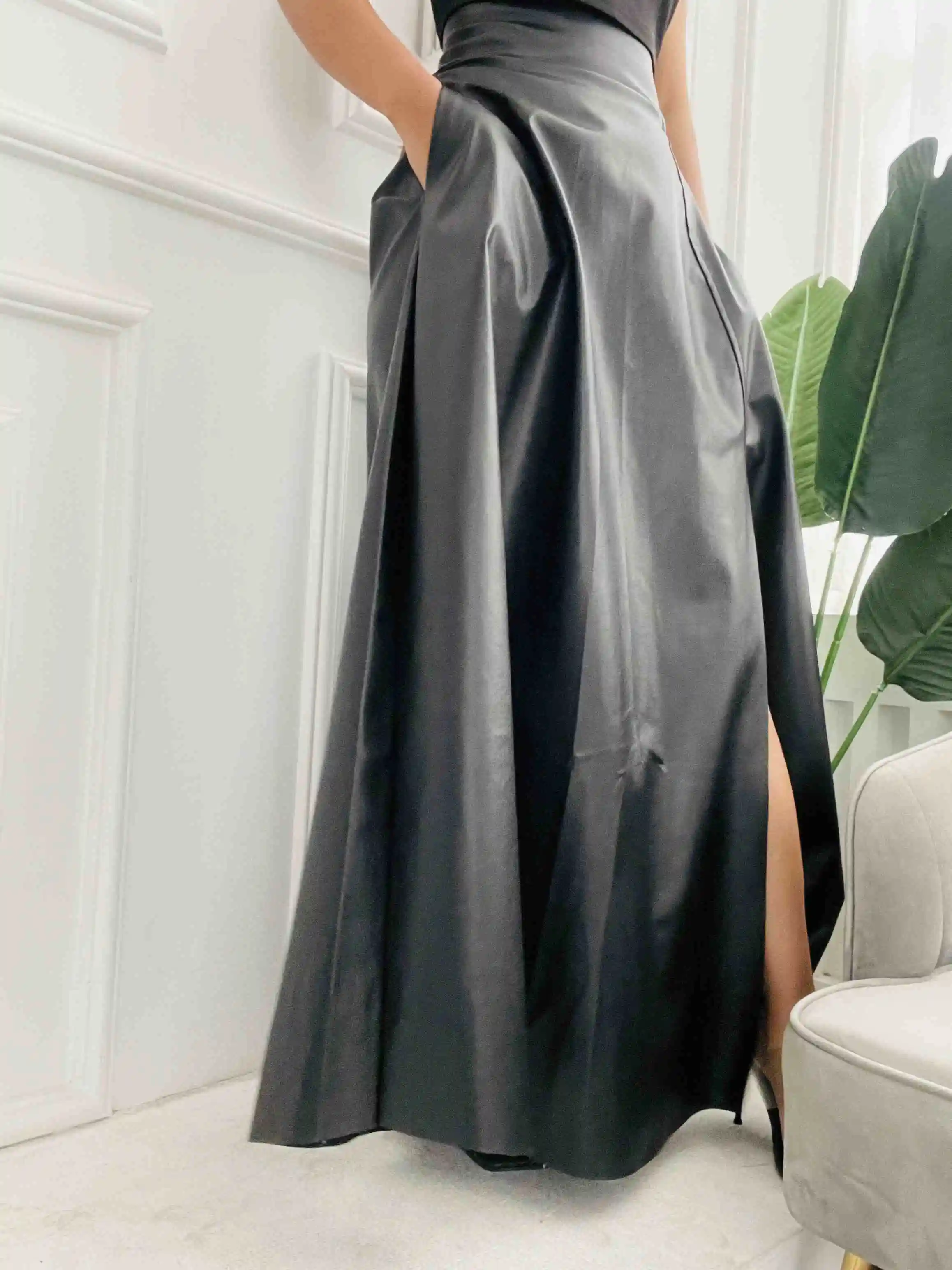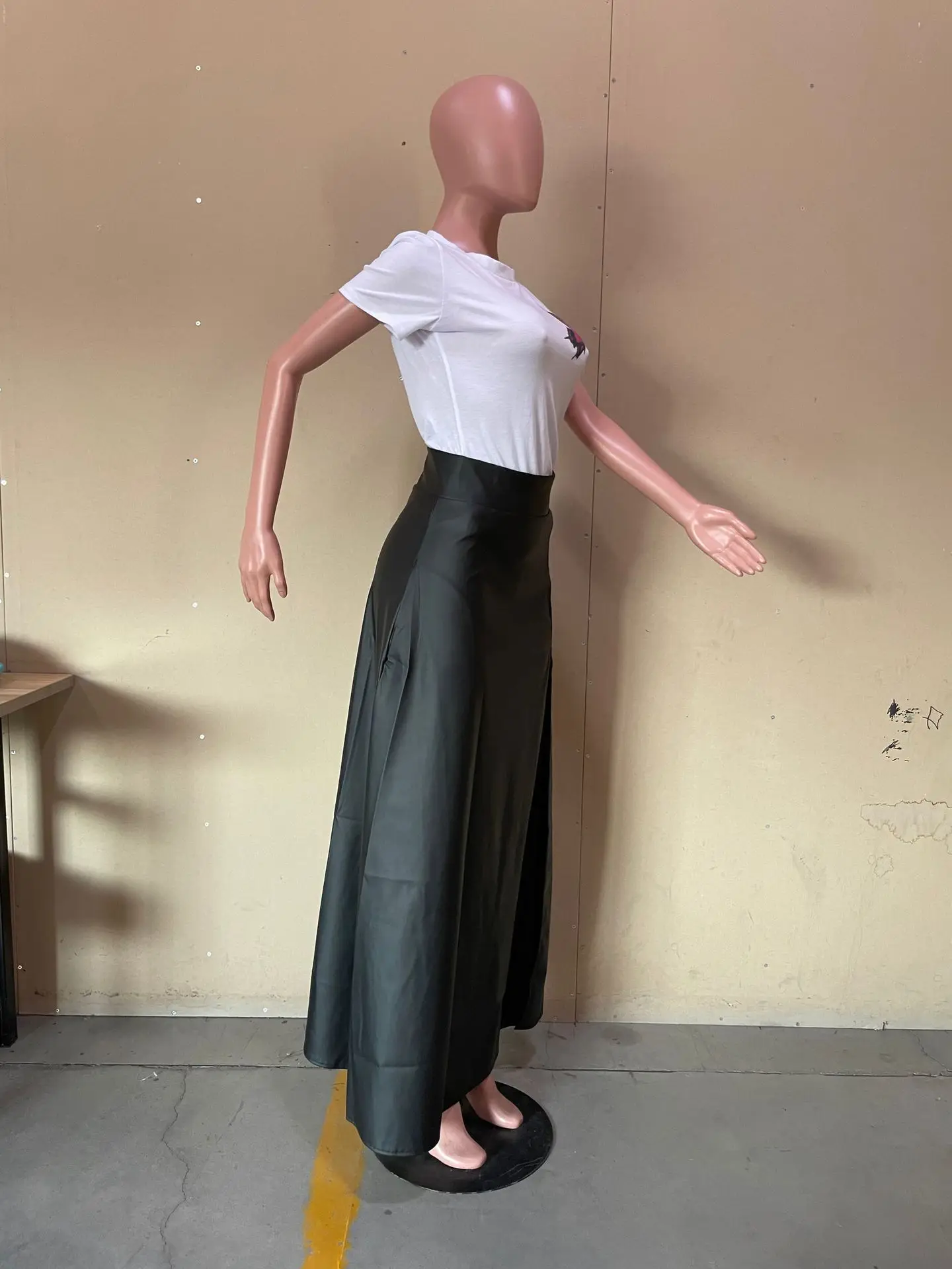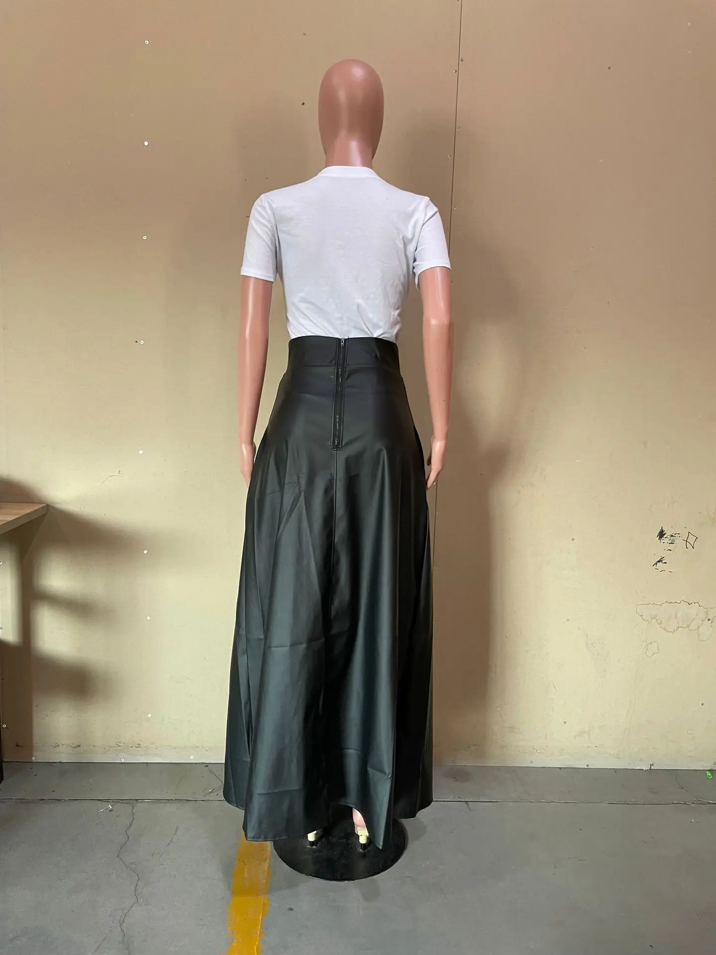 Черная юбка миди из искусственной кожи с высокой талией и рюшами на...