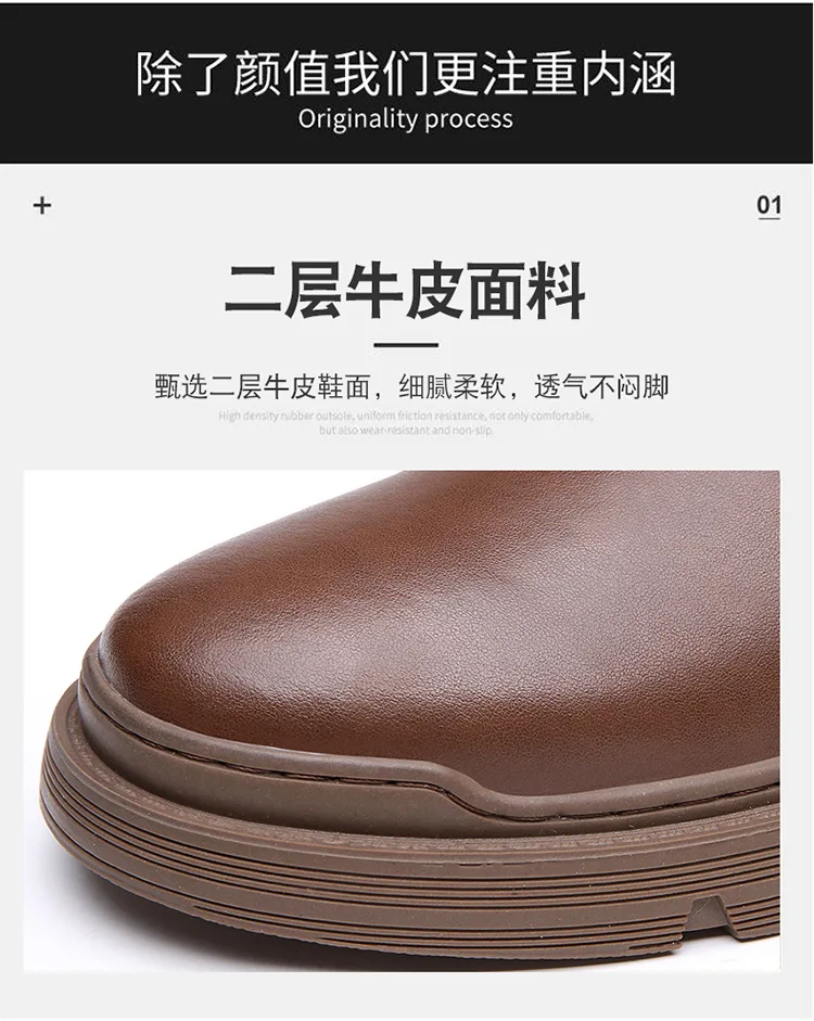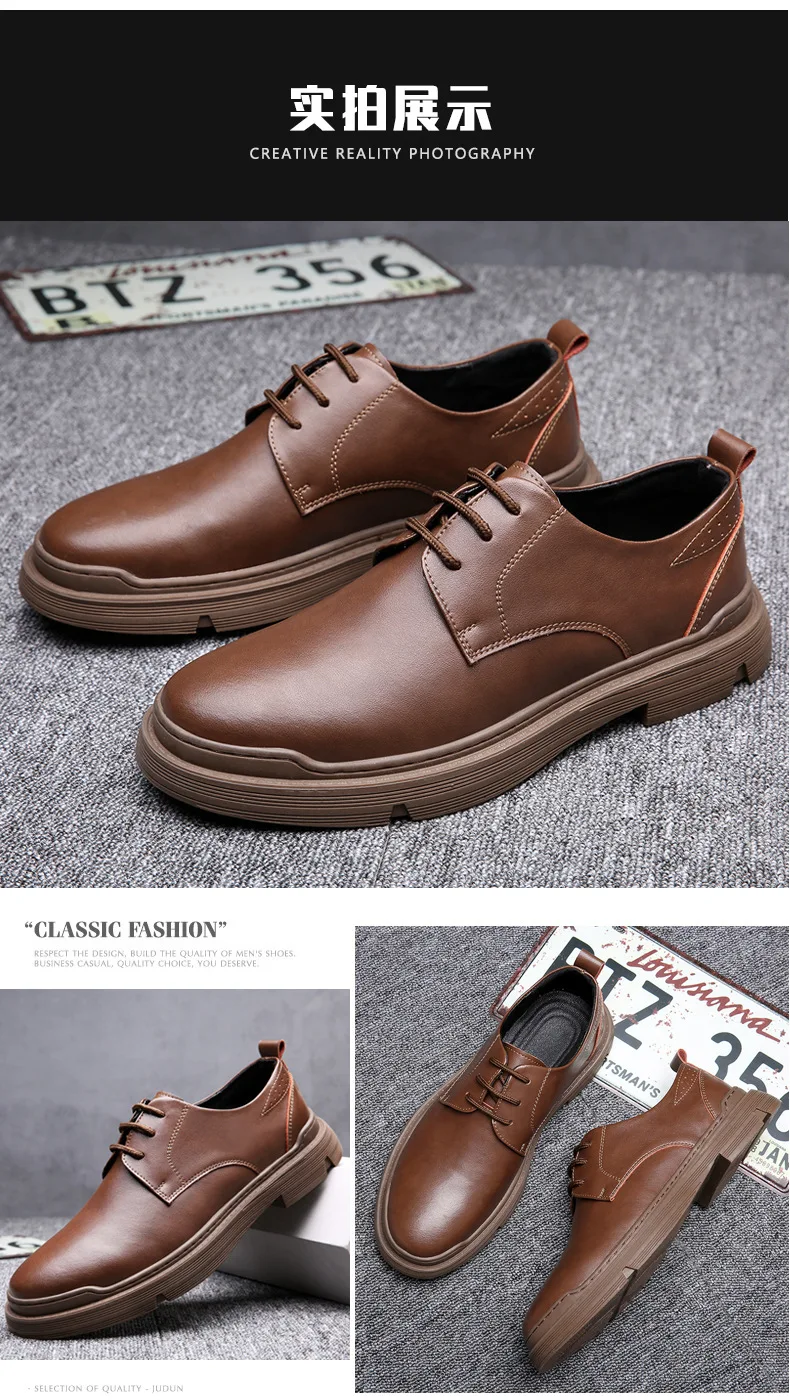 Мужская повседневная обувь; Коллекция 2022 года; Сезон осень; Кожаная обувь с большим носком; Ботинки Martens в британском стиле; Модная рабочая обувь из натуральной кожи с низким берцем; Цвет коричневый