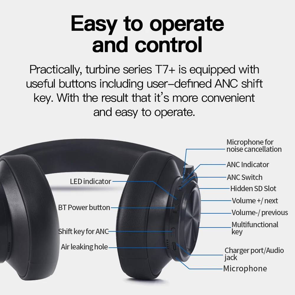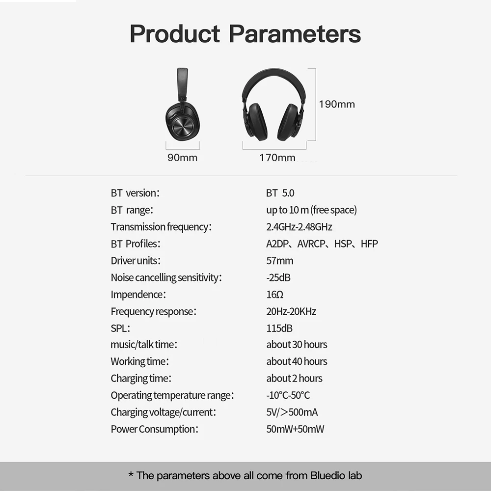 Особенности:Блок драйвера 57 ммПринять 57 мм полностью покрытые титановые блоки драйвера, в сочетании с VFT (технология векторного потока), что делает звук устойчивым и впечатляющим.Пользовательское активное шумоподавлениеЭта гарнитура BT использует пользовательскую технологию ANC, есть два уровня шумоподавления, вы можете выбрать сильное шумоподавление (4 микрофона, -25 дБ) или слабое шумоподавление (2 микрофона, 18 дБ) В соответствии с вашими потребностями.Распознавание лицаИспользуйте новейшие технологии распознавания лиц для определения ваших динамических команд. Когда вы снимаете гарнитуру, музыка приостанавливается; Когда вы носите ее снова, музыка будет продолжать играть, стабильная и удобная в использовании.Защита от снаЭта функция активирована в приложении Bluedio. Гарнитура автоматически отключится, когда она не будет двигаться в течение десяти минут, чтобы защитить уши.Функция подсчета шаговВы можете проверить синхронизацию данных обновления, которые показывают ваши прогулки и потребление калорий через приложение Bluedio, что вы можете наслаждаться высоким качеством звука, тем временем сохраняя здоровье.Поддержка sd-картыДобавить слот для sd-карты (поддержка sd-карты до 32 Гб,Не прилагаются), Вы можете слушать музыку в любое время даже без мобильный телефон, более бесплатно и удобно.Три режимаПриложение имеет три режима прослушивания, нормальный режим, режим защиты и режим ребенка, который может всесторонне защитить пользователя всех возрастов.Спецификация:Бренд: BluedioМодель: T7 +Цвет: черныйВерсия BT: 5,0Дальность передачи: до 10 м (без барьера)Частота передачи: 2,4 ГГц-2,48 ГГцПротоколы поддержки: A2DP, AVRCP, HSP, HFPБлок драйвера: 57 ммЧувствительность шумоподавления: -25 дБСопротивление: 16 ΩЧастотная характеристика: 20 Гц-20 кГцSPL: 115 дБМузыка/время вызова: около 30 часовВремя работы ANC: около 40 часовВремя зарядки: около 2 часовРабочая температура: -10 ℃-50 ℃Входное напряжение/ток: 5 В/>500 мАПотребляемая мощность: 50 мВт + 50 мВтРазмер изделия: 19*17*9 см/7,48*6,69*3,54 дюймаУпаковочный лист:1 * гарнитура1 * зарядный кабель1*3,5 мм до Тип-C аудио кабель1 * Флокированная сумка1 * Руководство пользователя