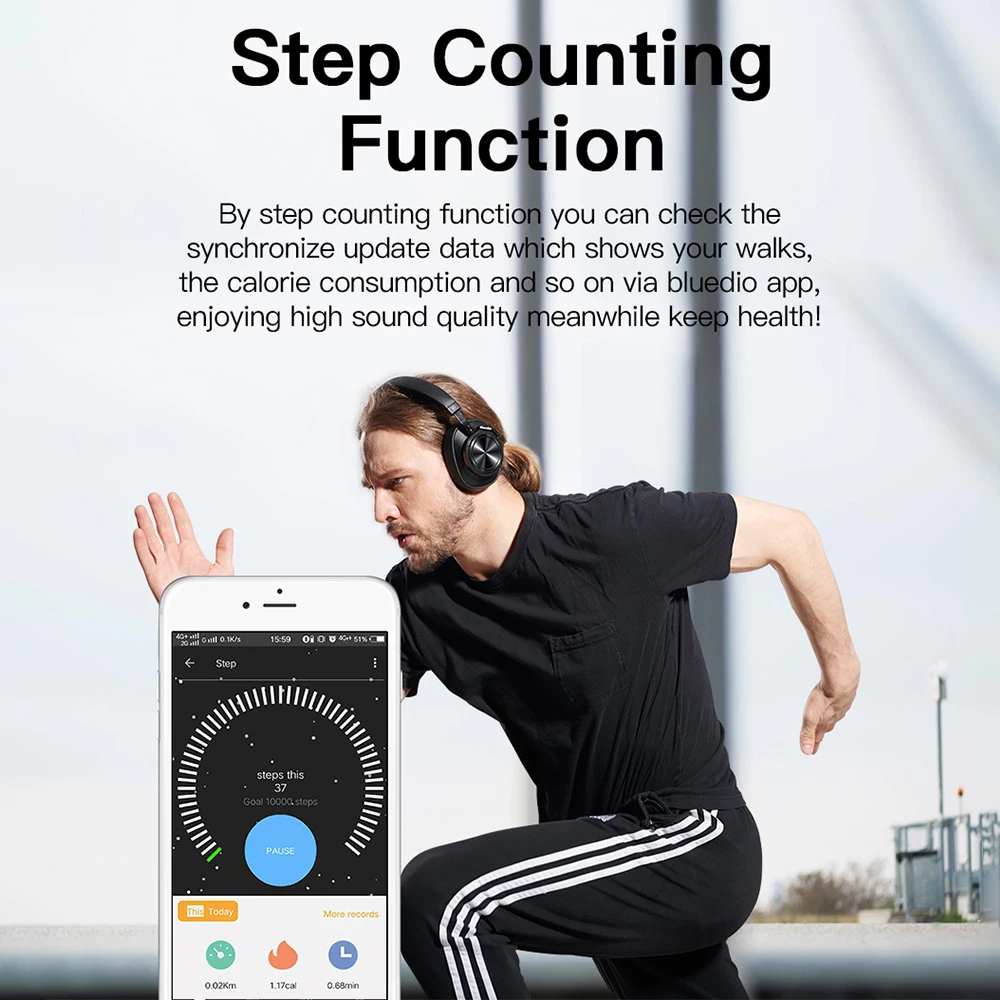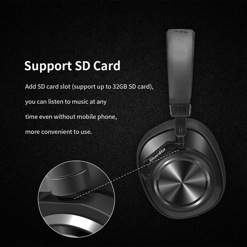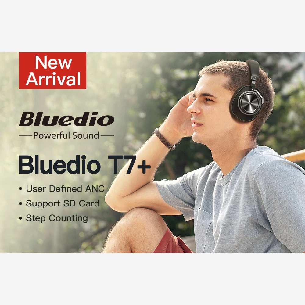 Bluedio T7 + беспроводная BT гарнитура с активным шумоподавлением, гарнитура с распознаванием лица, слот для sd-карты, пошаговые счетные черные наушники