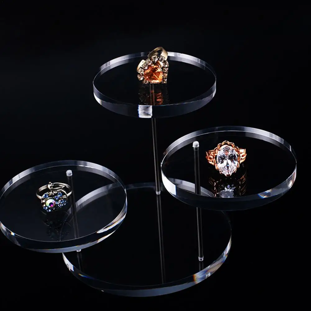 3-слойная акриловая витрина, круглая подставка для ювелирных изделий, ожерелий, серег, колец, вращающаяся стойка для демонстрации, Легкая очистка, Круглая Пластина