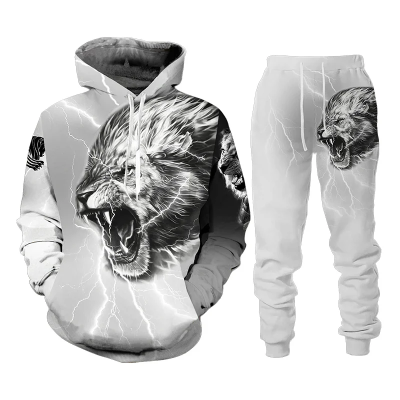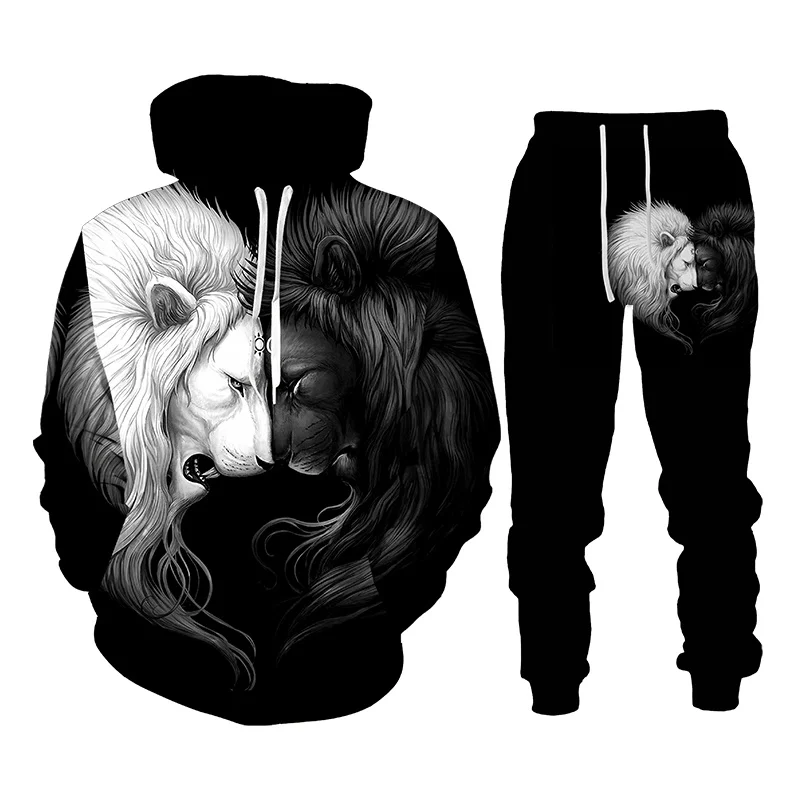 Костюм спортивный женский с 3D-принтом льва, Повседневный пуловер, свитшот, штаны, спортивная одежда