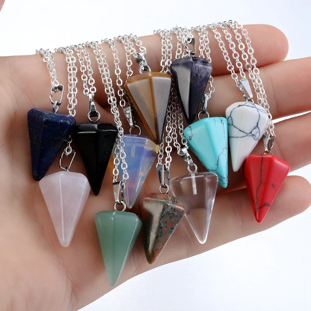 Ожерелье из натурального камня маленького размера, 1 шт., амулет-маятник рейки, шестигранная цепочка, очаровательные украшения для мужчин и женщин