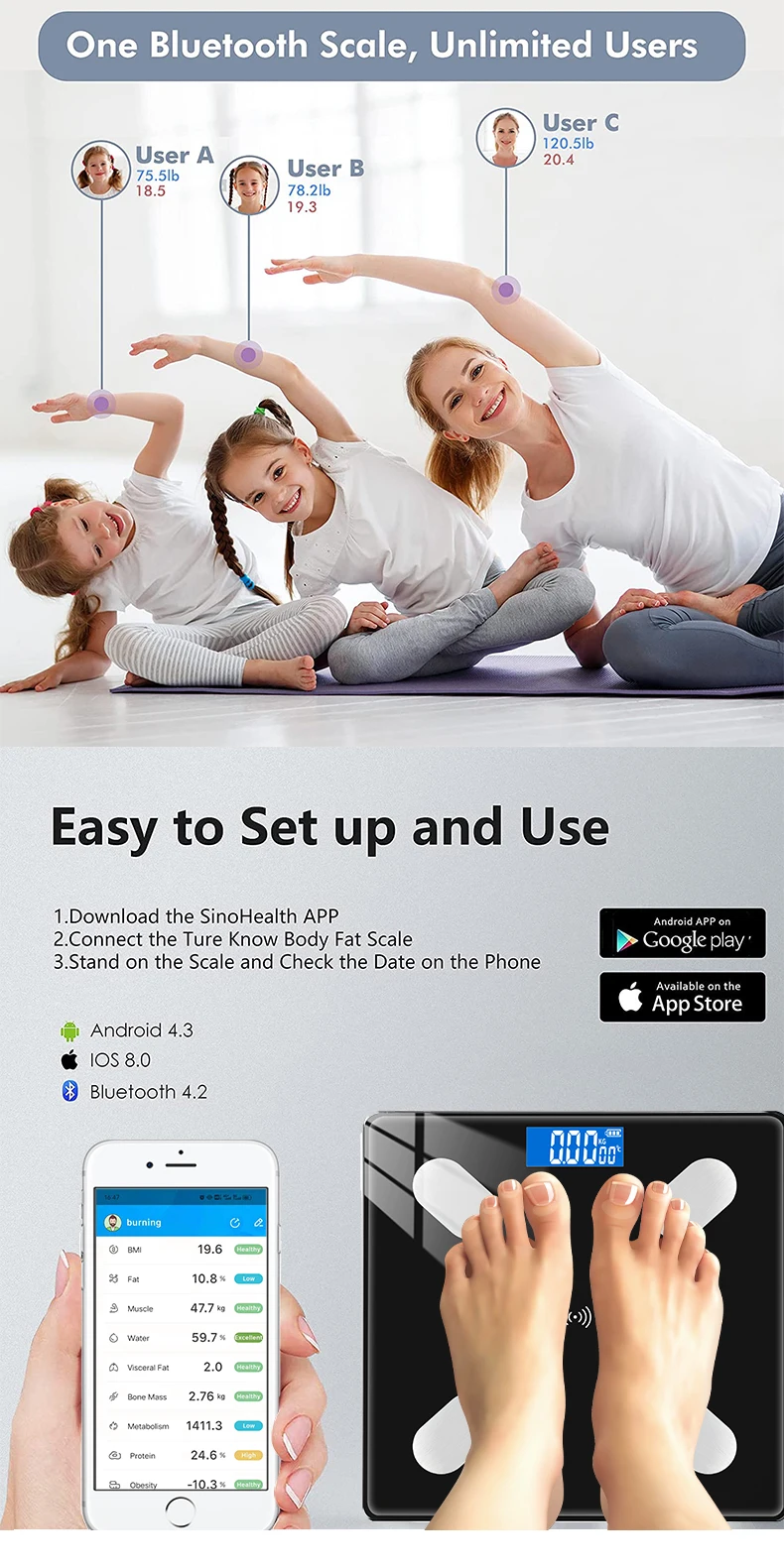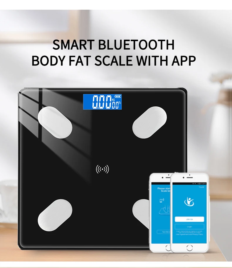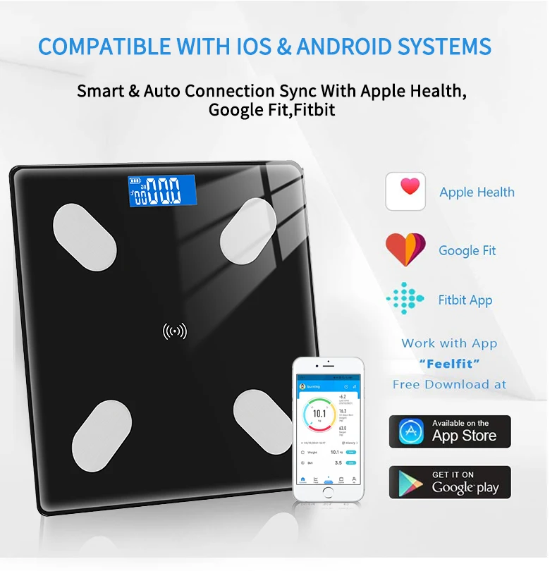 Bathroom Weight Scale Digital Body Fat Scale Floor Smart Wireless LCD Display Body Composition Analyzer Smartphone App Bluetooth