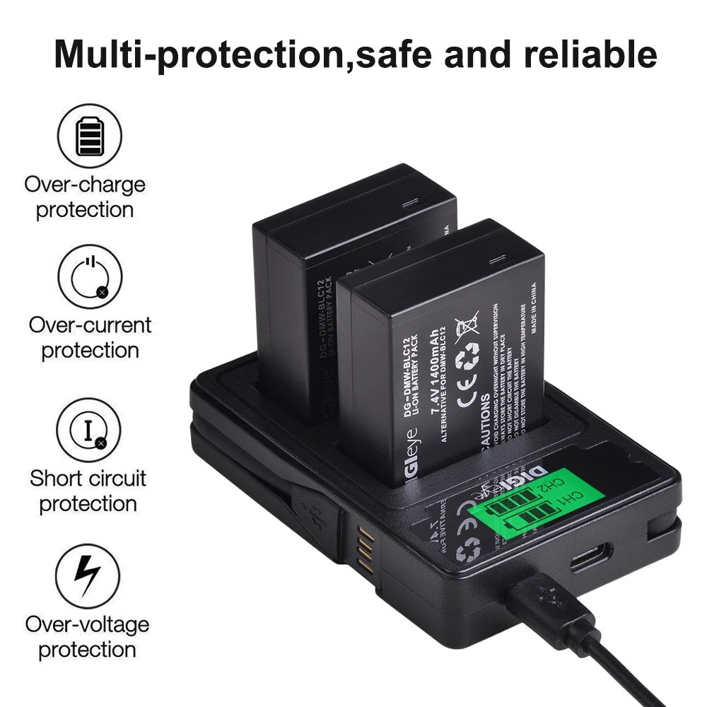 DMW-BLC12 BLC12E BLC12PP батареи + двойное зарядное устройство с ЖК-экраном для Panasonic Lumix DMC-FZ200 FZ1000 FZ2500 DMC-G5 G6 G7 GX8 G85 GH2