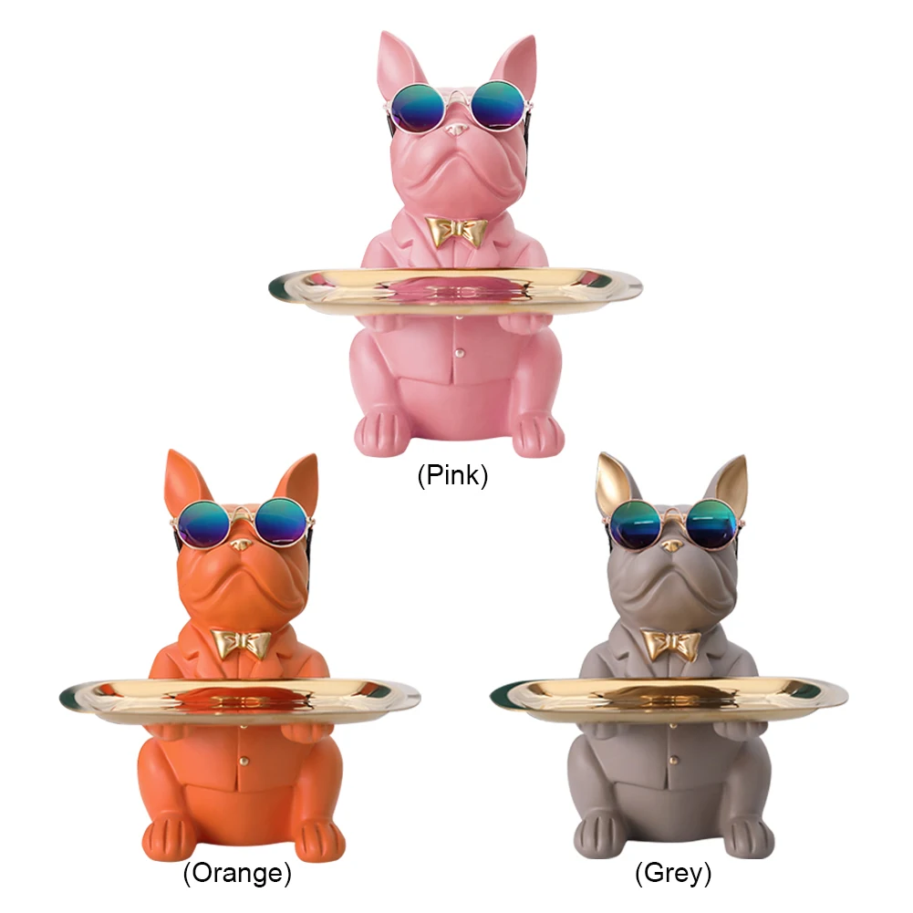 Креативный поднос для скульптуры бульдога, стеллаж для хранения кос...