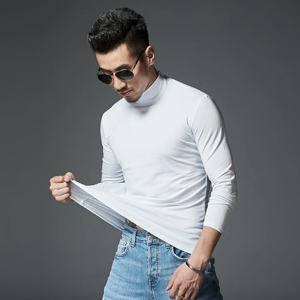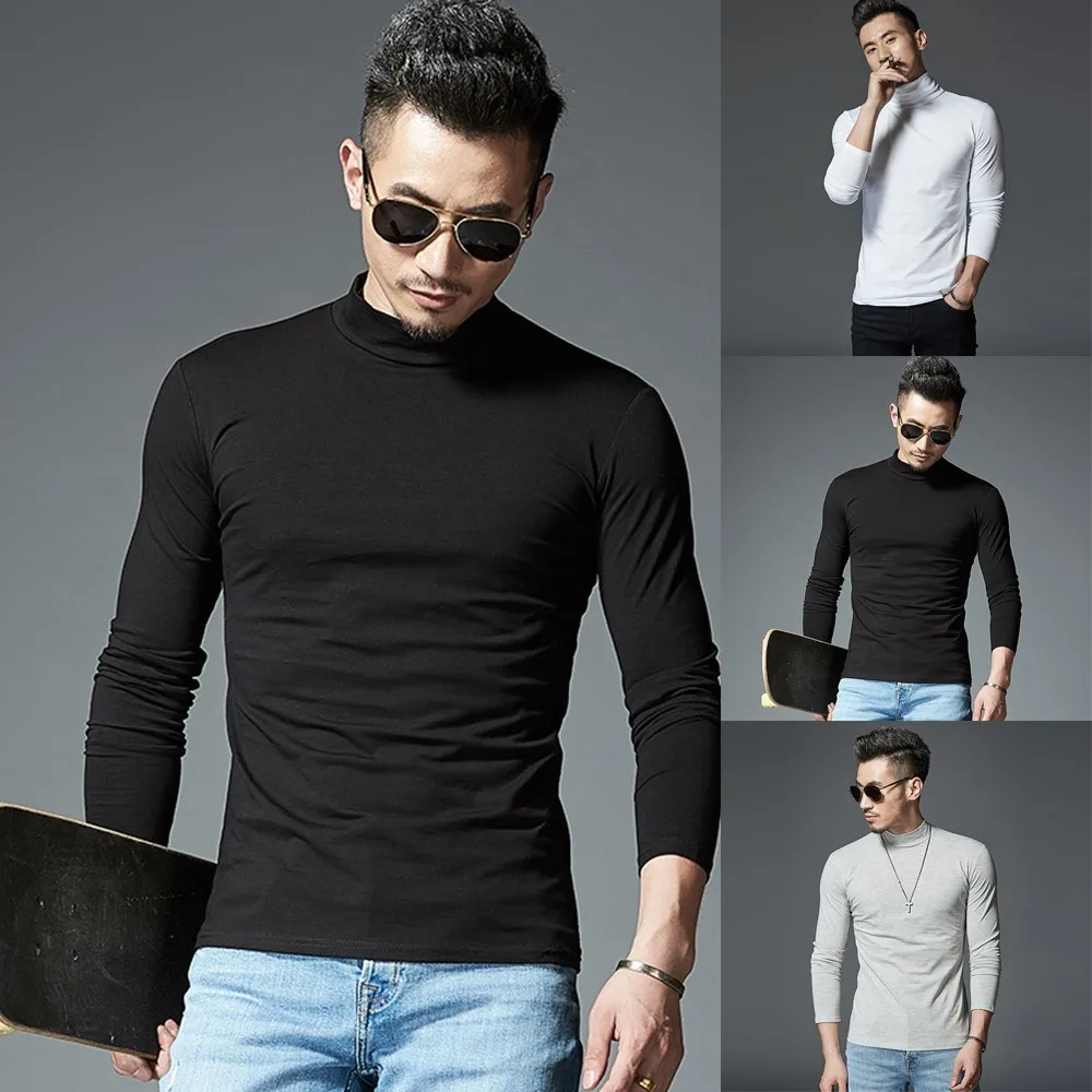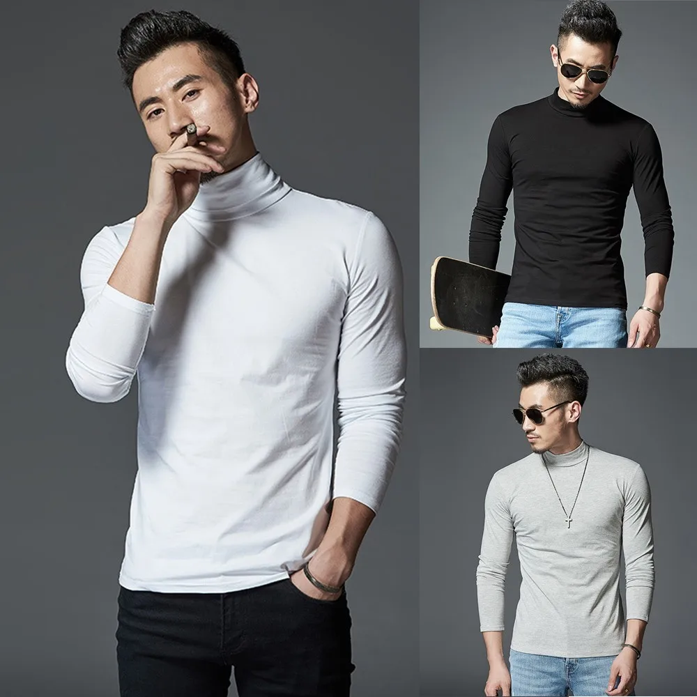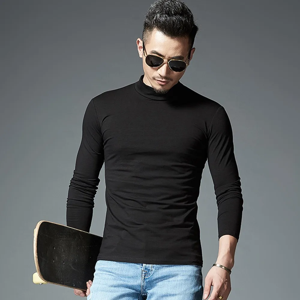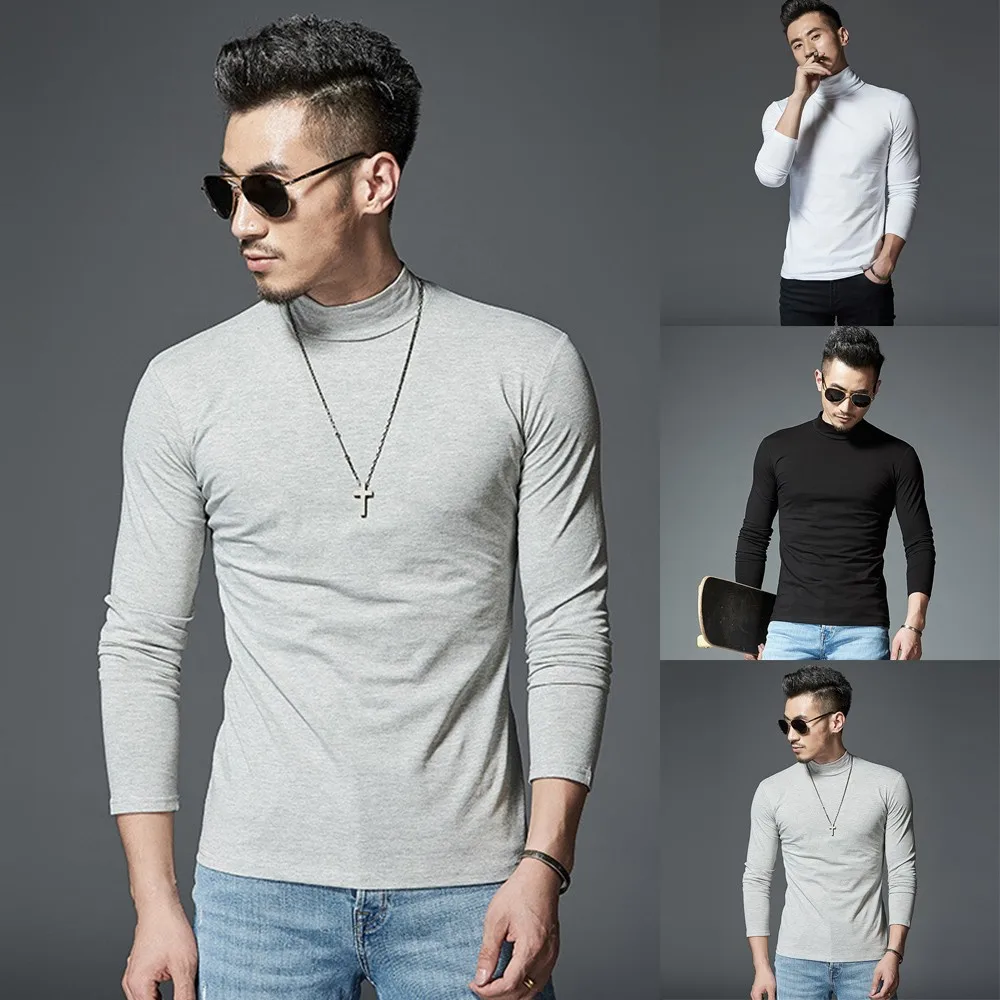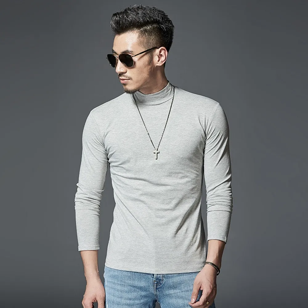 Мужские однотонные футболки с длинным рукавом, Тонкая зимняя теплая рубашка с коротким воротником и длинными рукавами, домашняя пижама