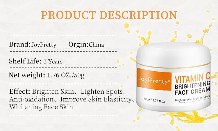 【Витамин с Осветляющий крем для лица-28 днейВитамин С принесет идеальный отбеливающий эффект, чтобы сдержать меланин и предотвратить появление шелков, вызванных солнечным светом. С соотношением между научными смесями, он может отбеливать и разглаживать кожу за короткое время, он может даже затянуть кожу и усадить поры, если прилипает к ней.【Идеально подходит для всех типов кожи и не вызывает раздраженияВитамин с, гиалуроновая кислота, экстракт цинанча атрата. Идеально подходит для всех типов кожи. Включая нормальную, сухую, жирную и комбинированную кожу и чувствительную кожу.