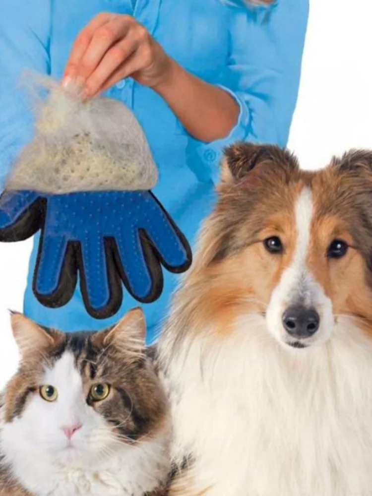 Перчатки-щетки для очистки, стрижка кошек и собак, эффективный масс...