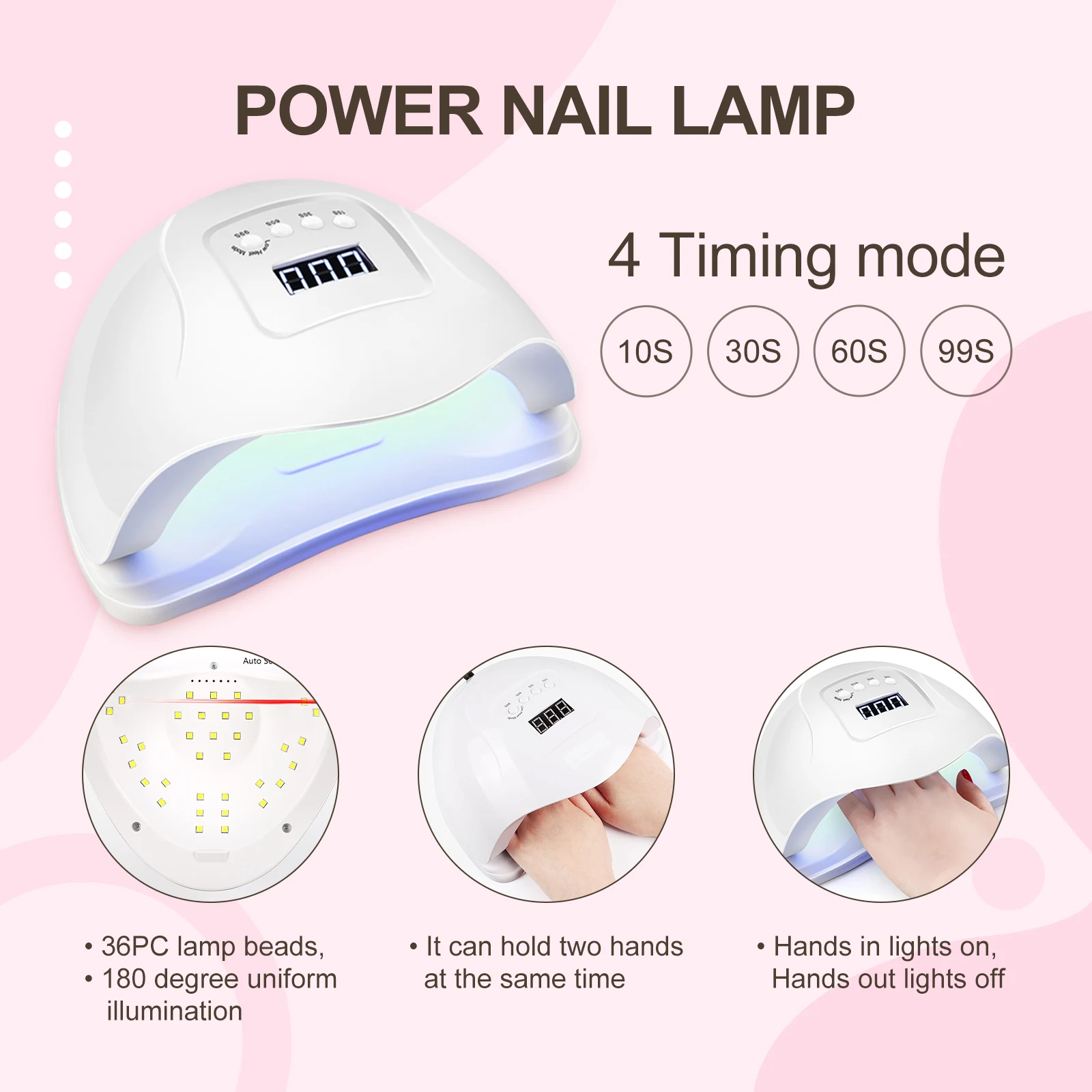 Набор Маникюрный для наращивания ногтей с УФ-лампой мощностью 36 Вт