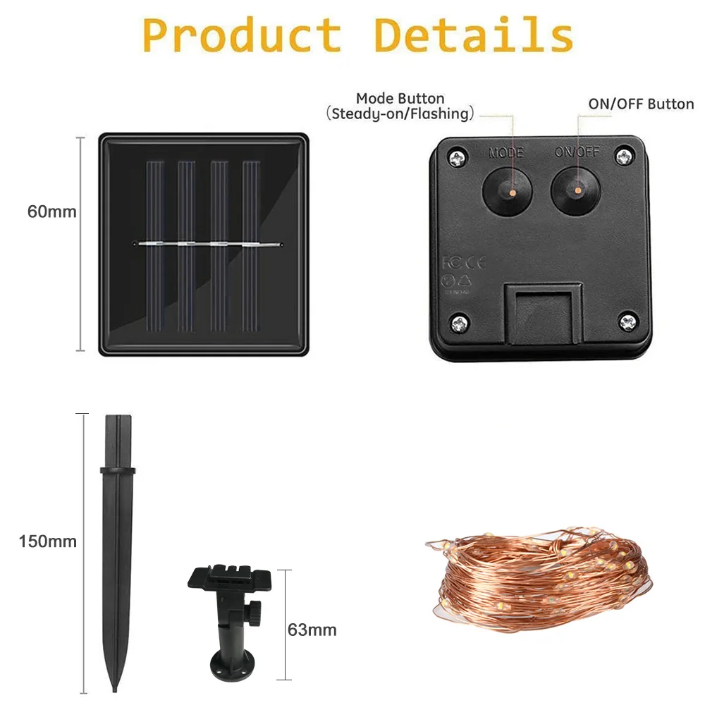 Водонепроницаемая уличная гирлянда на солнечной батарее, 10 м, 100 светодиодов30 м, 300 светодиодов