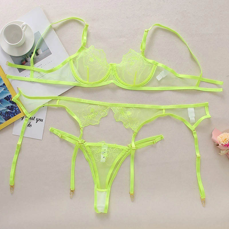 Кружевной сетчатый прозрачный сексуальный комплект нижнего белья, ж...