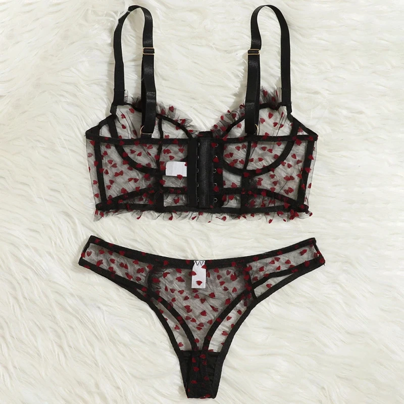 Прозрачное красное сексуальное нижнее белье с принтом Love, женский...