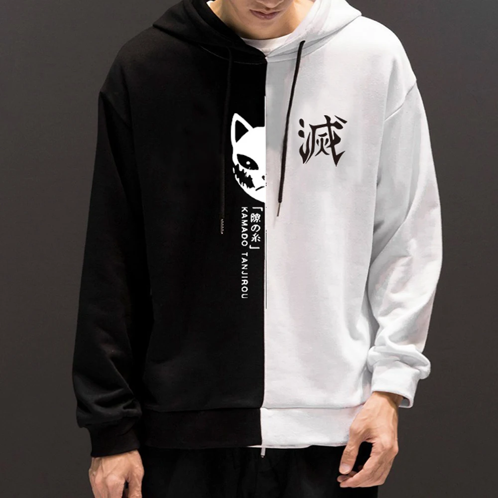 Осенняя мужская спортивная одежда с аниме рассекающим демонов Двухцветная Толстовка Tanjiro толстовки с принтом тонкая толстовка в стиле Харадзюку Свободные толстовки Топы