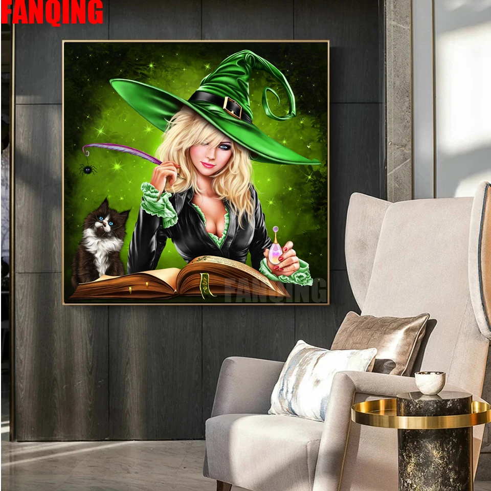 Алмазная картина Хэллоуин ведьмы и кошки полный квадрат/Круглый Алмаз Вышивка Алмазная мозаика мультфильм украшение дома