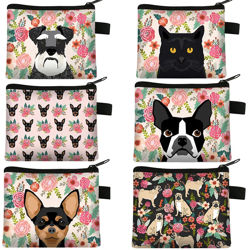 Сумка для монет с милой собакой, милым щенком, котенком, цветком, женская сумка для хранения ID карт, мини-сумка для девочек, кошелек для покупок, подарок
