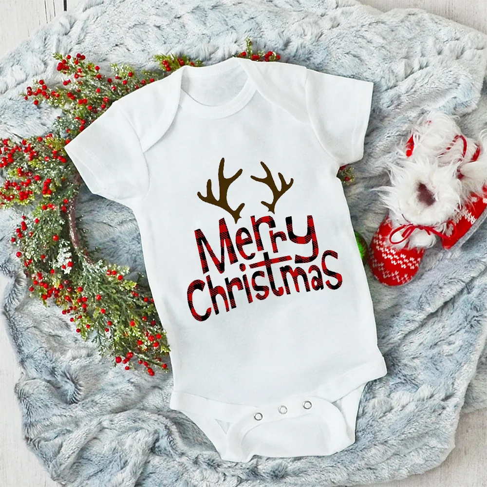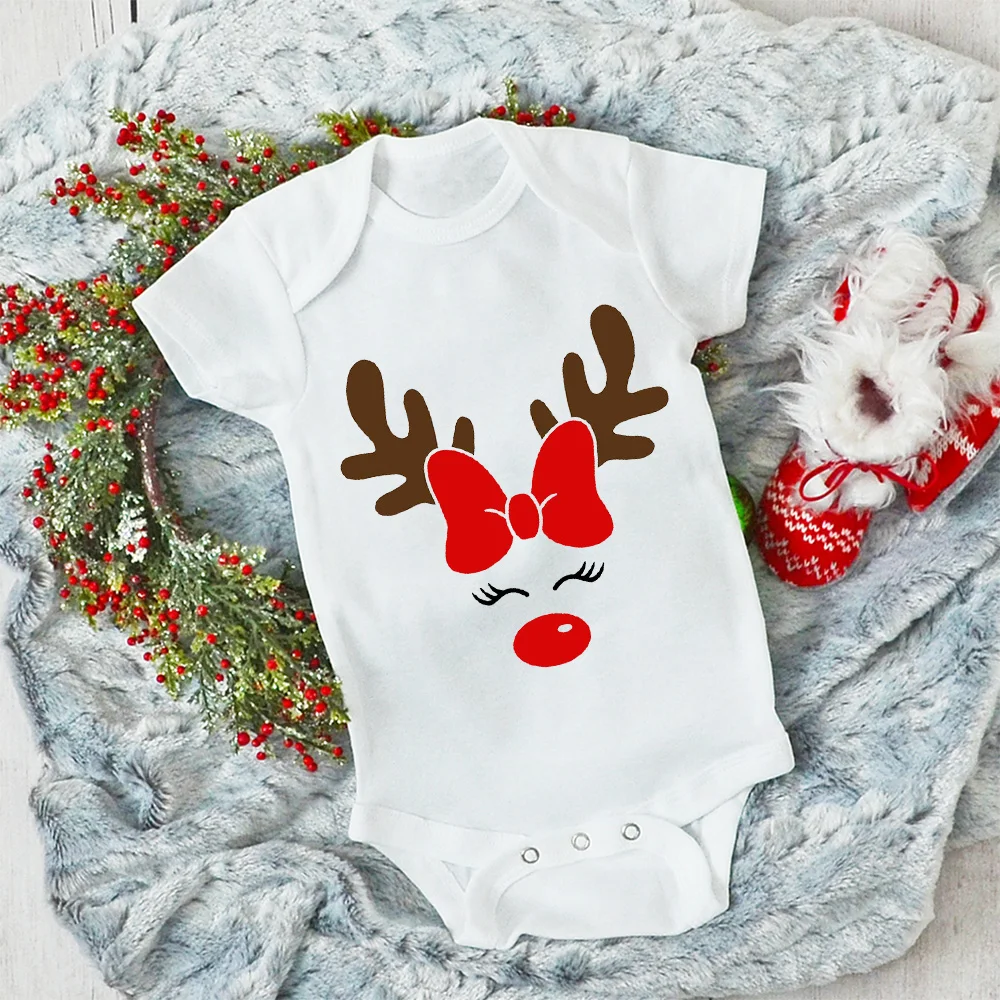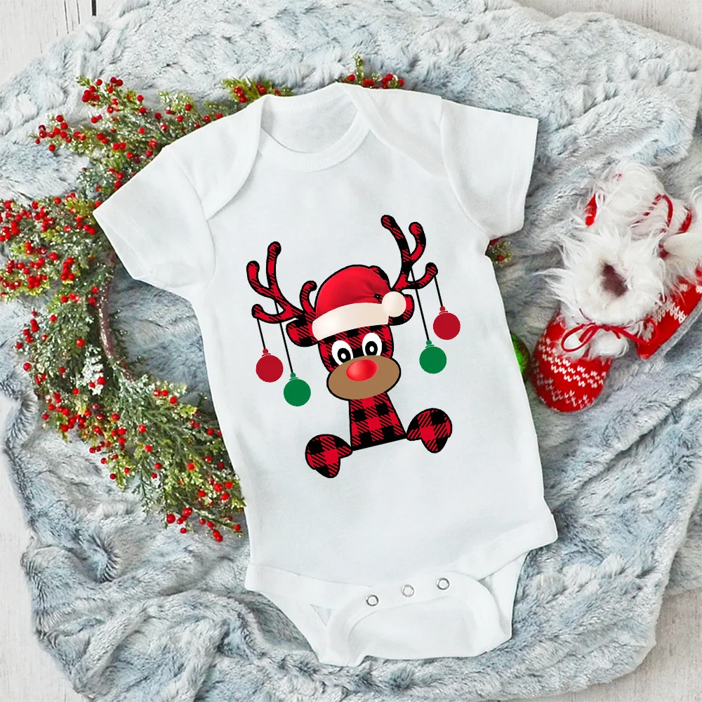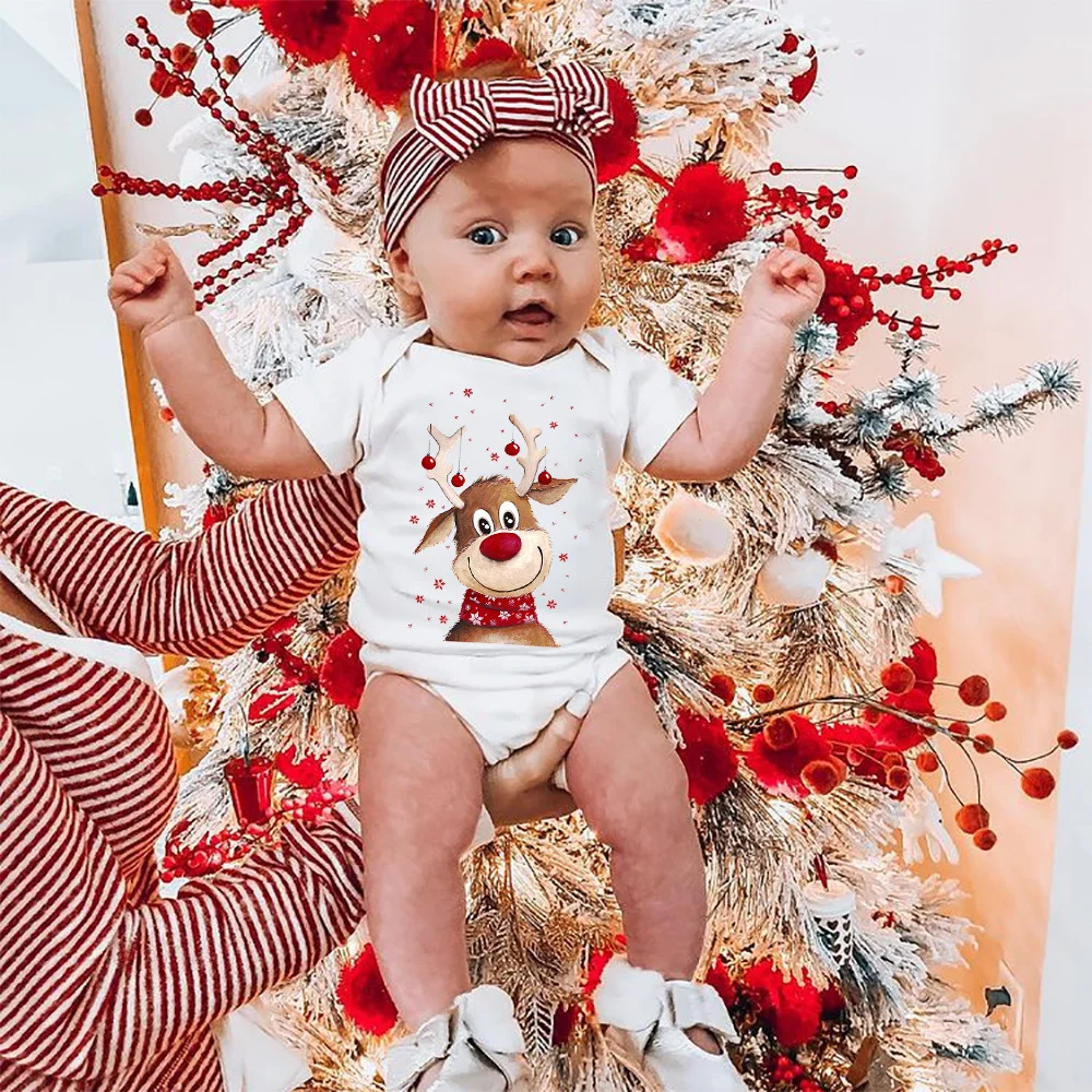 Новинка 2021 года; Милые Боди с рождественским оленем для новорожденных; Одежда для маленьких мальчиков и девочек; Комбинезоны с короткими рукавами и рисунком для малышей; Подарок на Новый год