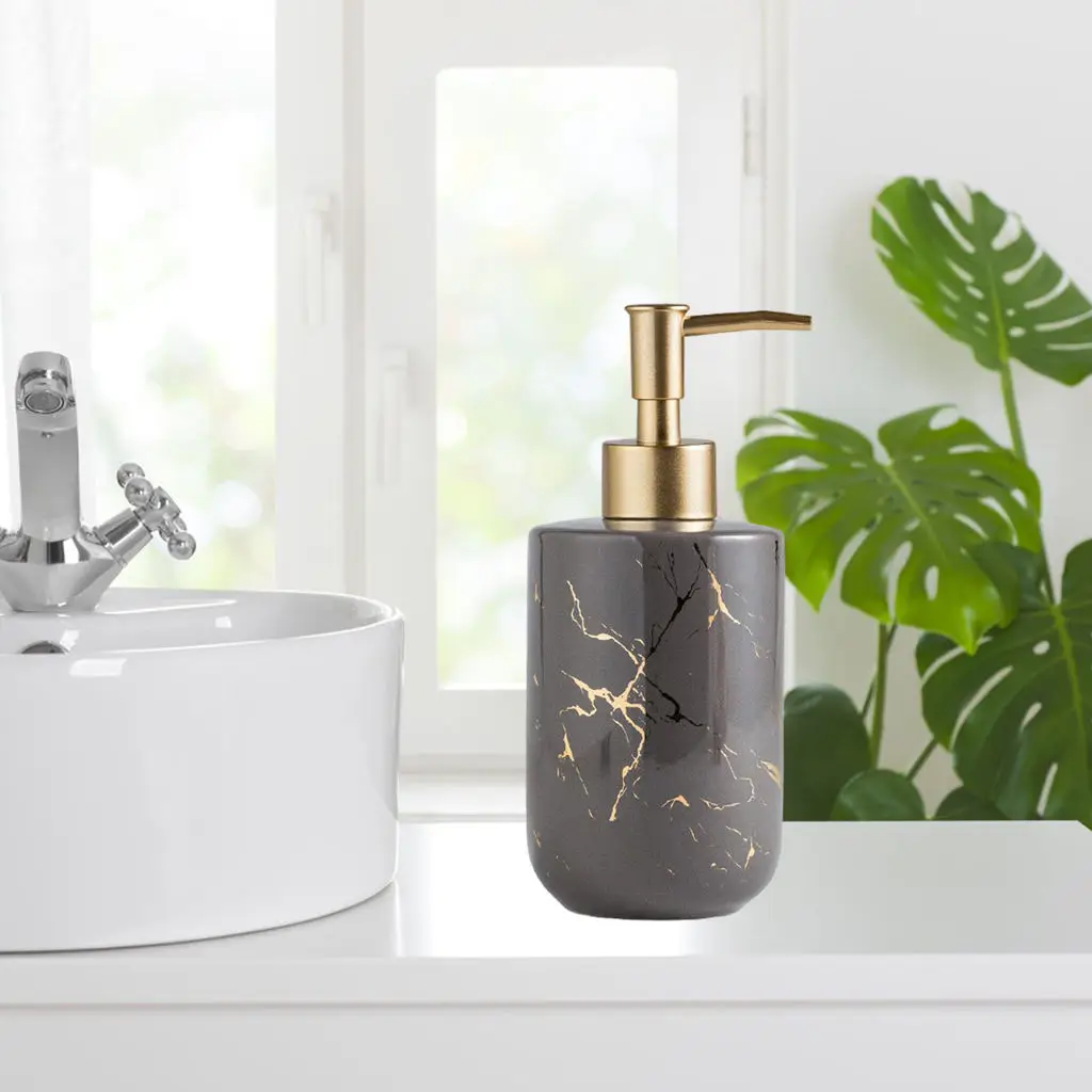 Диспенсер для жидкого мыла, дозатор для лосьона, шампуня для макияжа, жидкий крем для ванны, разделенный диспенсер, бутылка.Изготовлен из высококачественной керамики, прочный и прочный.Дизайн золотого мрамора, изысканный и элегантный, подходит для хранения геля для душа, шампуня и т. д.Пресс-тип бутылки рот, мягко нажмите вниз, легко работать и использовать.Просто Отвинтите съемную головку насоса для заполнения.