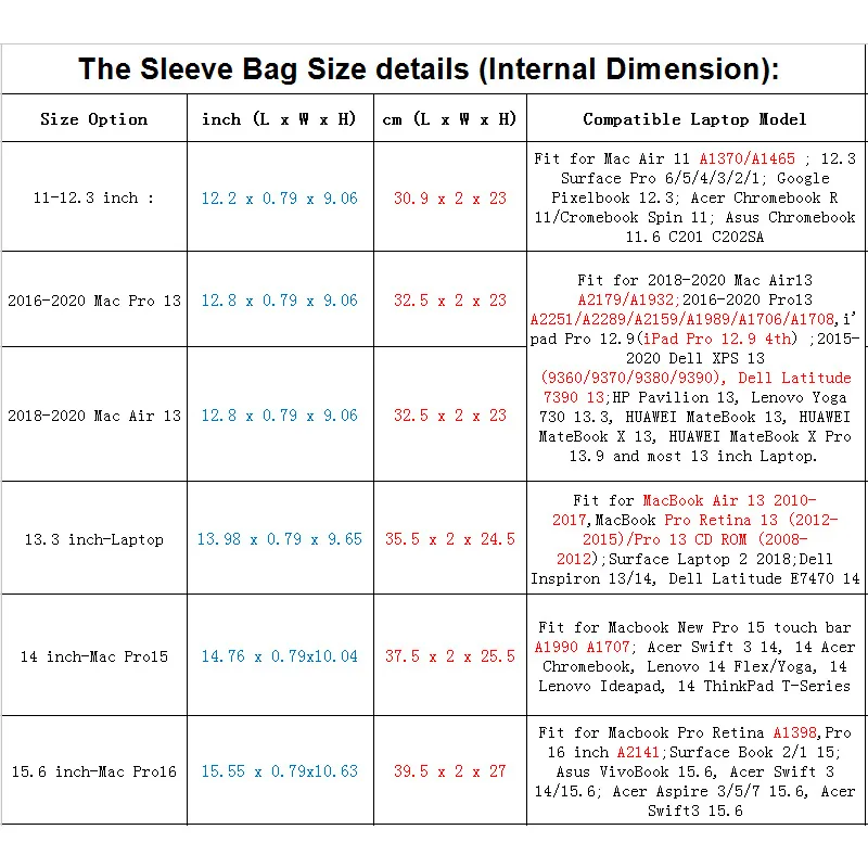 Примечание: Пожалуйста, измерьте длину, ширину и толщину вашего компьютера перед размещением заказа, спасибо!