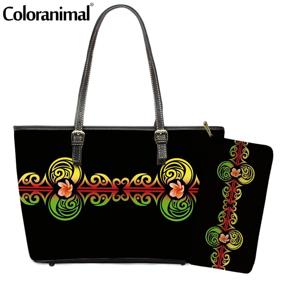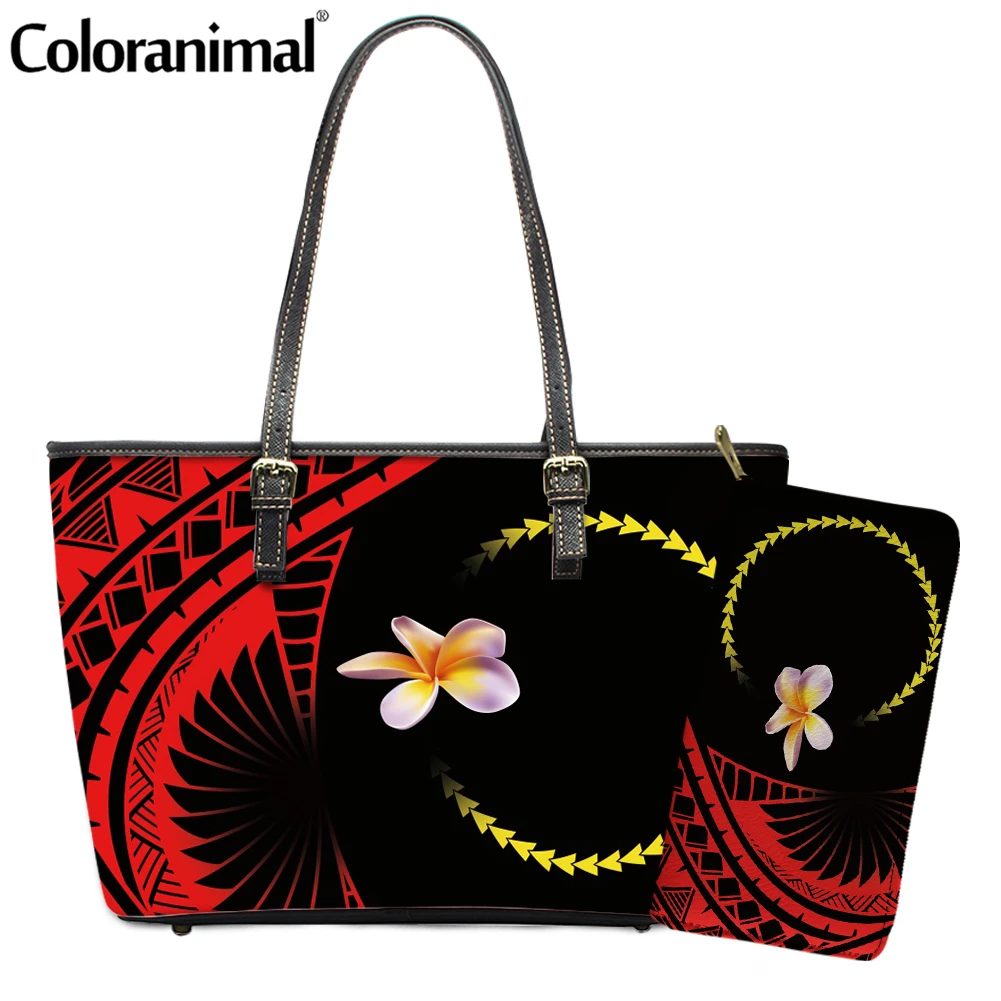 Coloranimal симпатичная полинезийская Плюмерия с принтом женская сумка через плечо Повседневная кожаная сумка-тоут для женщин 2 шт.компл. с верхней ручкой Bosla