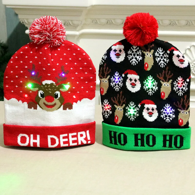 Новинка 2022, яркая облегающая шапка с подсветкой, теплая шапка для детей и взрослых, декоративные шапки на Новый год и Рождество
