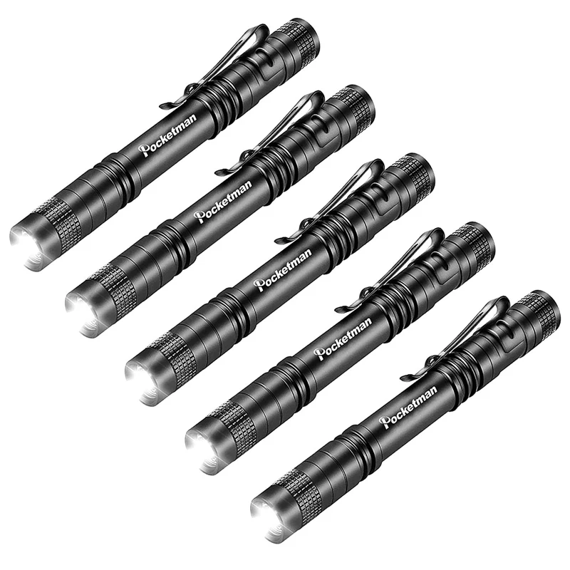 Why do you choose to purchase Our POCKETMAN Flashlight?●A perfect gift for a father, husband, wife, scout and college student for any occasion.●Suitable for extreme conditions such as storms, floods, power outages, earthquakes, and natural disasters.●Purpose: Fishing, hiking, hunting, exploring and even taking the kids out trick-or-treating.●Quality Guarantee: An extra-hard anodized-aluminum body resists scratching and chipping, maintains a sleek look, and enhances grip.●Portable and small, this torch is convenient to pack in your bag, pocket, backpack and car compartment.●The professional small flashlight is a best gift for mechanics, auto repairmen, inspectors, nurses, doctors, friends and kids.