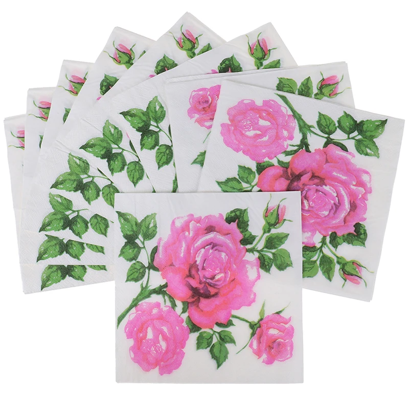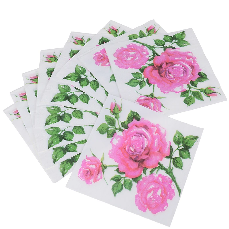 Салфетка Бумажная с розами, 20 шт.упак. шт.партия, для праздников и...