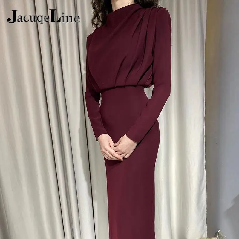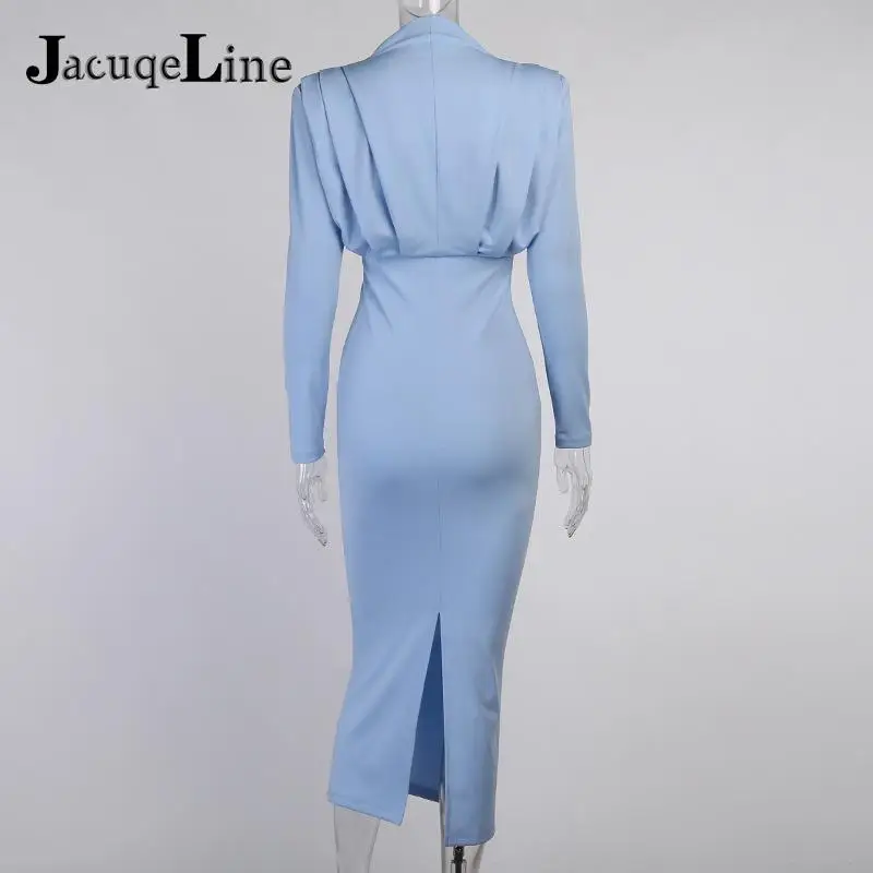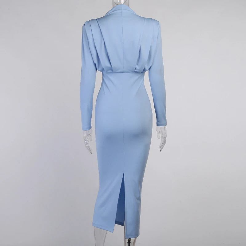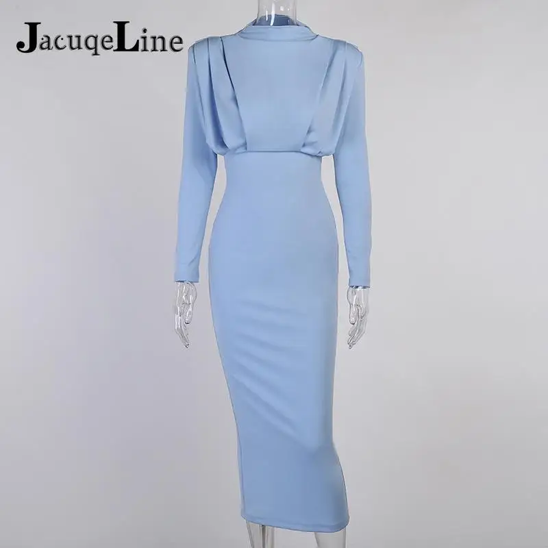 Элегантное облегающее женское платье миди с высоким воротником, привлекательное осеннее облегающее платье с разрезом, рюшами и длинным рукавом, вечерние платья, 2021