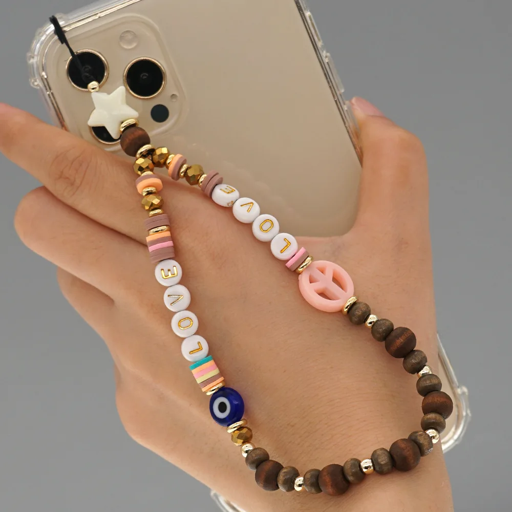 Простой телефон в богемном стиле, искусственная Мягкая Керамика, акриловый женский браслет с бусинами, цепочка, подвеска для телефона, шнурок с защитой от потери