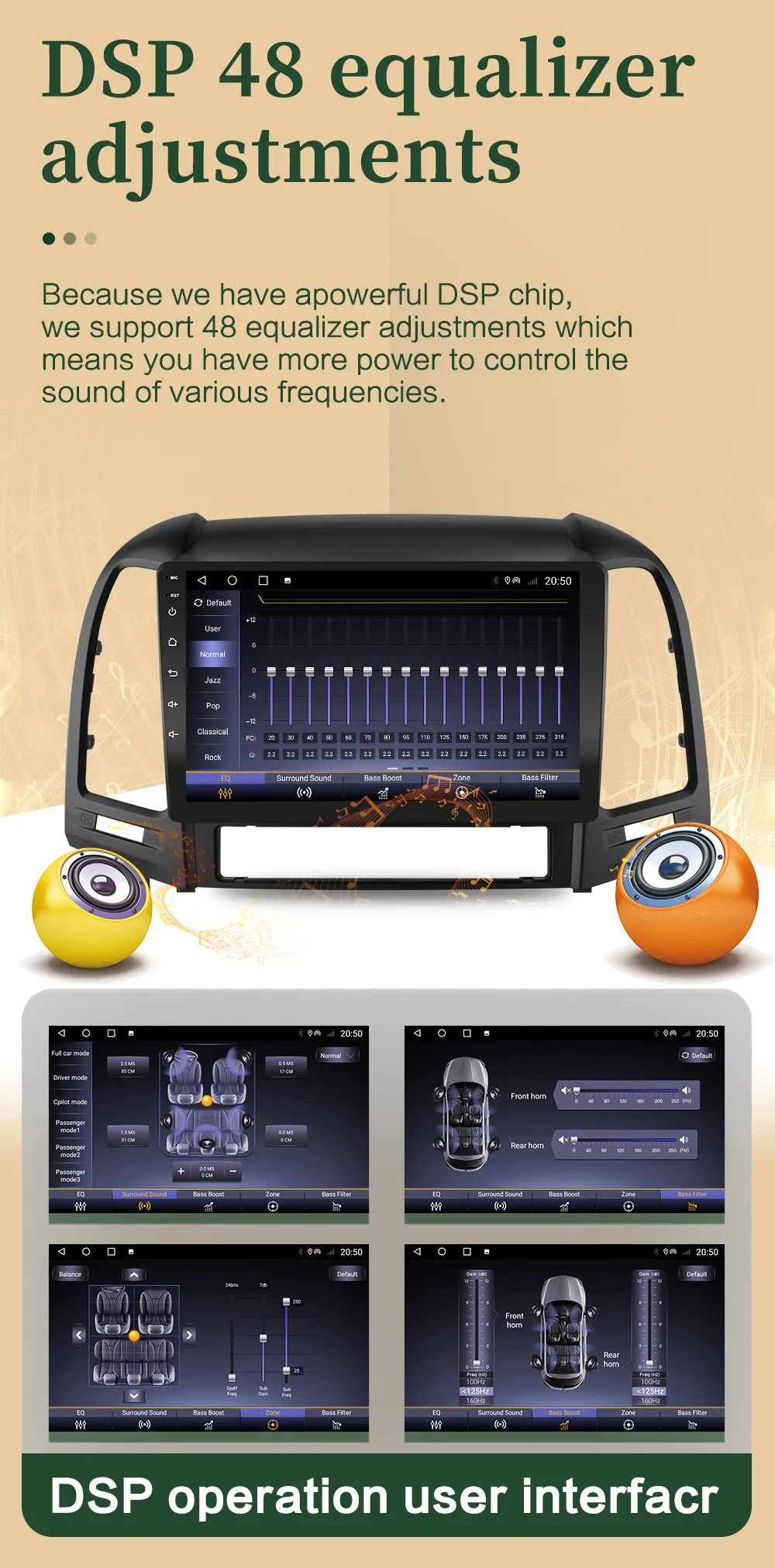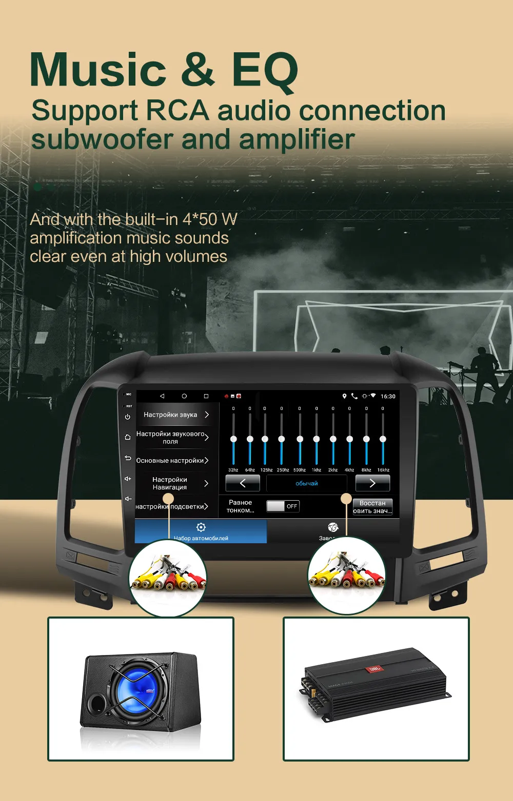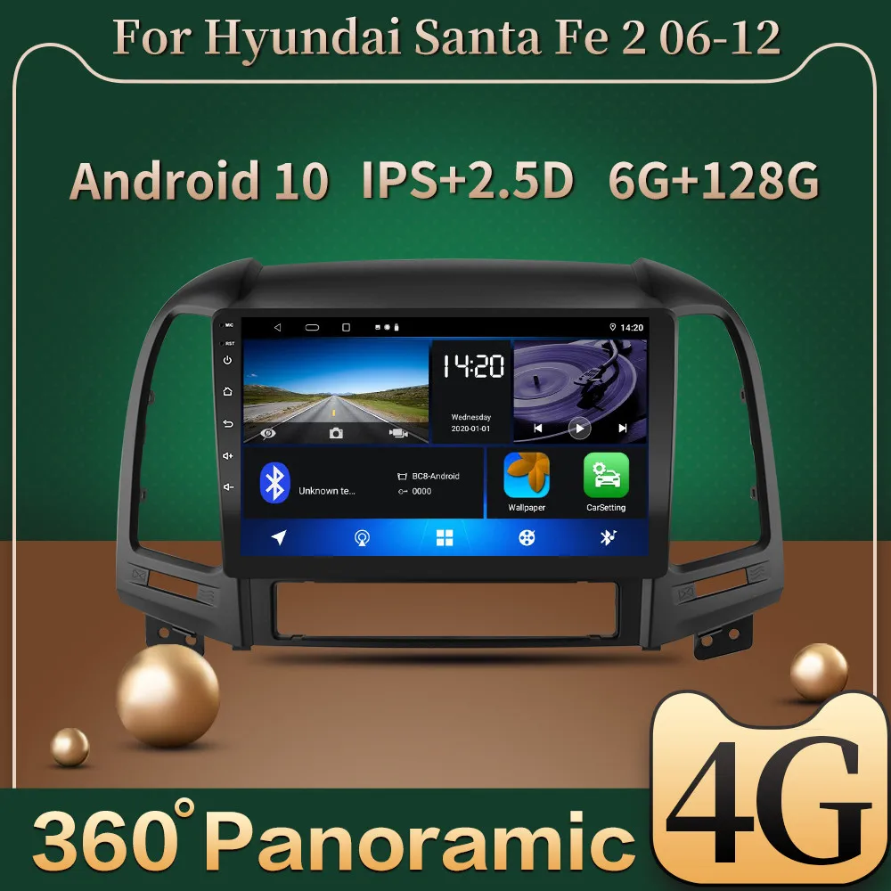 Автомагнитола 2DIN, Android 10, мультимедийный видеоплеер для Hyundai Santa Fe 2, 2006, 2007, 2008, 2009, 2010, 2011, 2012, DSP, GPS-навигация