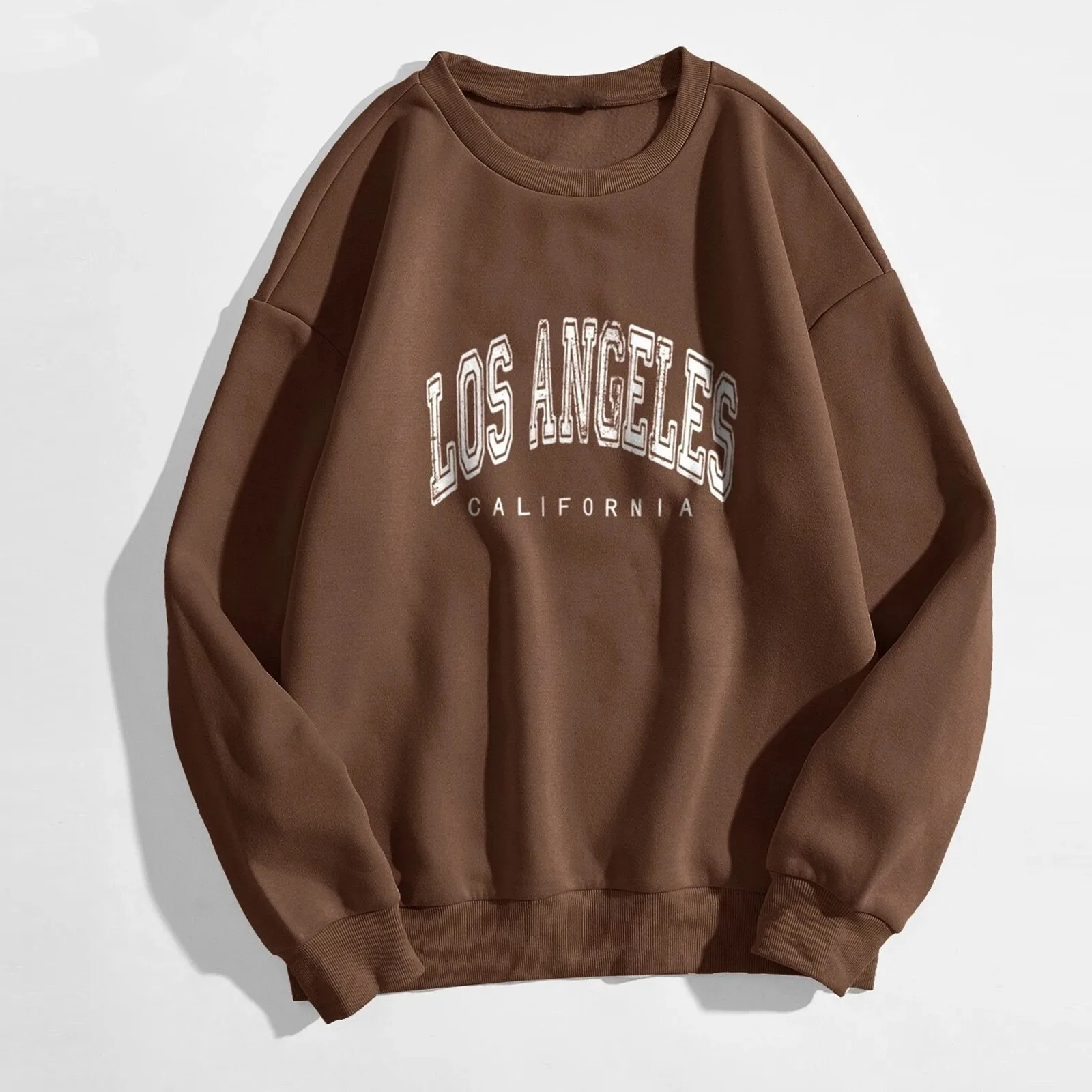 Женский свитшот, модный коричневый пуловер с буквенным принтом Лос-...