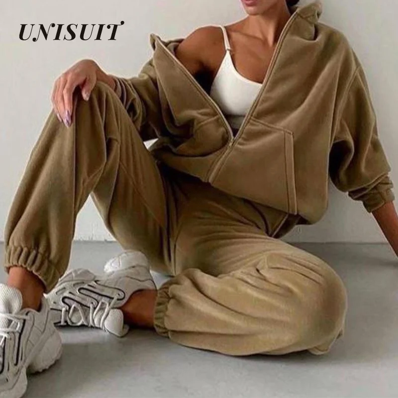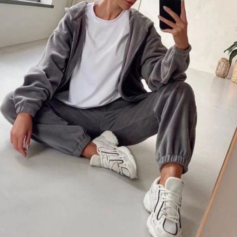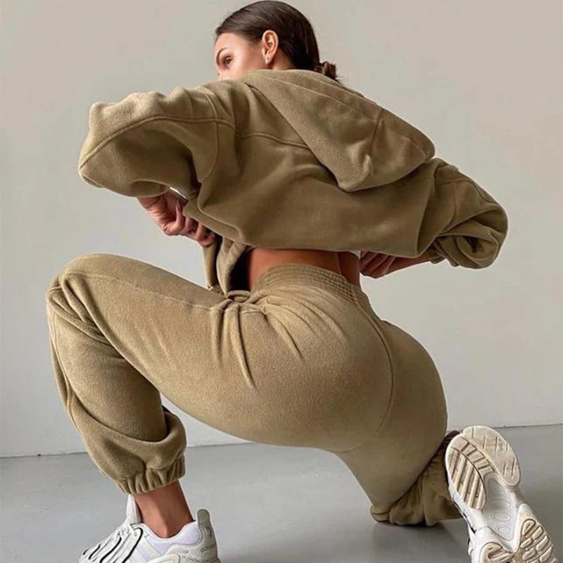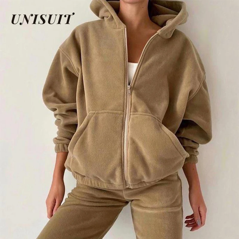 Повседневный Женский комплект из двух предметов с флисовой толстовк...