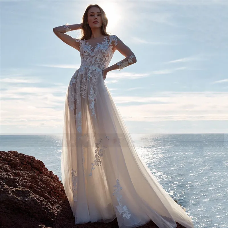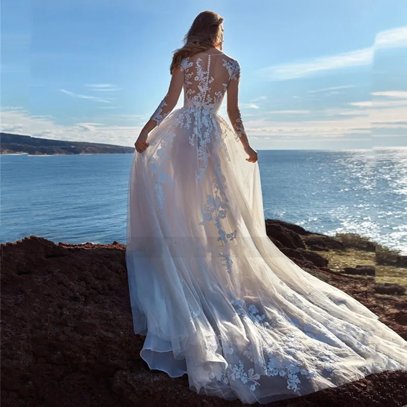Кружевное пляжное платье с аппликацией для невесты, новинка, свадеб...