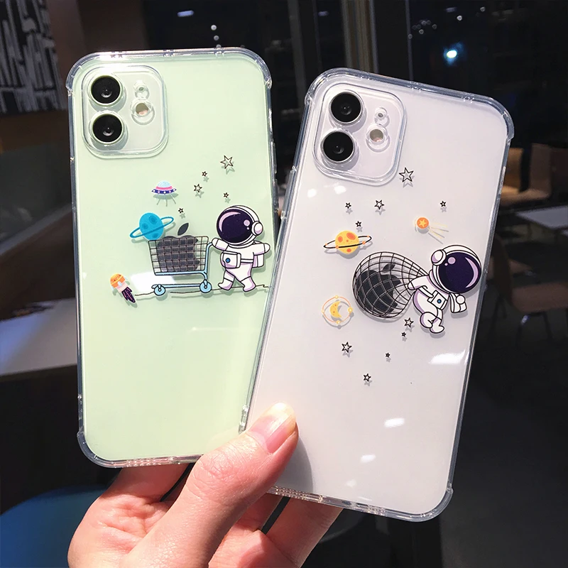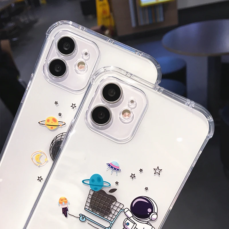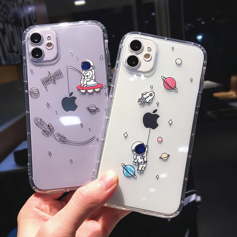 Милый прозрачный чехол для телефона с изображением космонавта планеты для iPhone 13 12 Pro 13 X XS Max XR 12 SE 2020 7 8 Plus прозрачный мягкий чехол