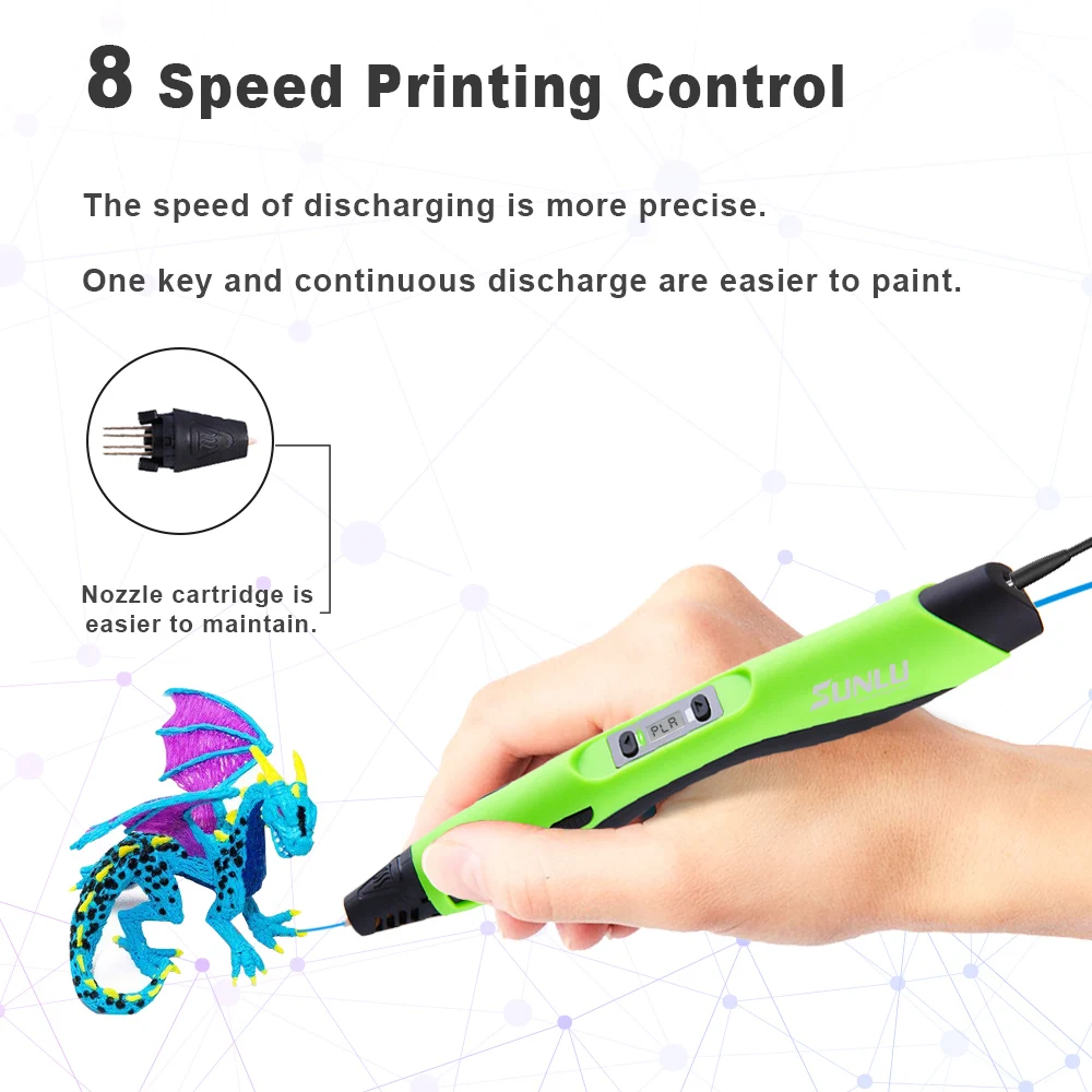 Название: SL-300Количество:1 ручка,1x адаптер,1 основание ручки,1 руководство пользователя,2x PLA нить,2x Крышка для пальцевОптимальная температура: АБС 180-210 ℃PLA 160-180 ℃Применимый материал: 1,75 мм PLA/ABSЦвет: белый/черный/синий/зеленыйВходная мощность: DC5V 2A 10WМощность вход адаптера переменного тока: AC100-240V 50/60HZ 0.35A
