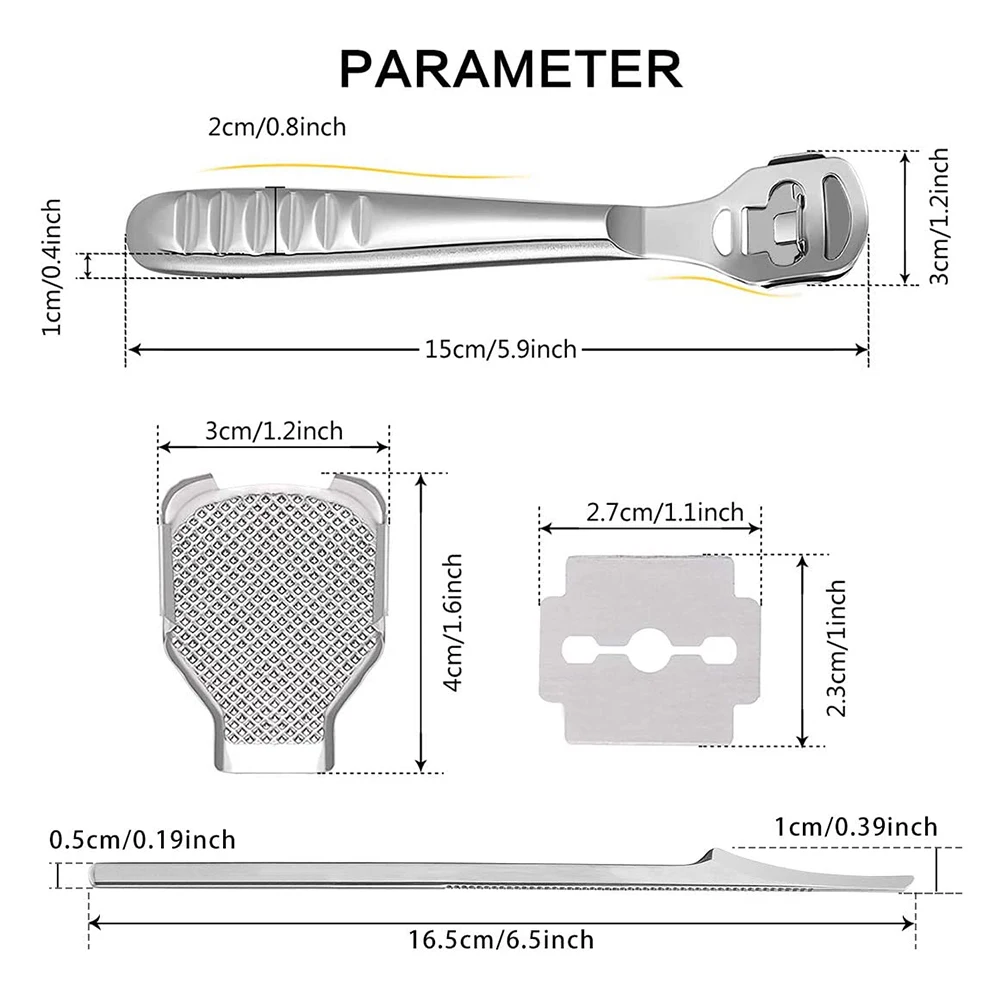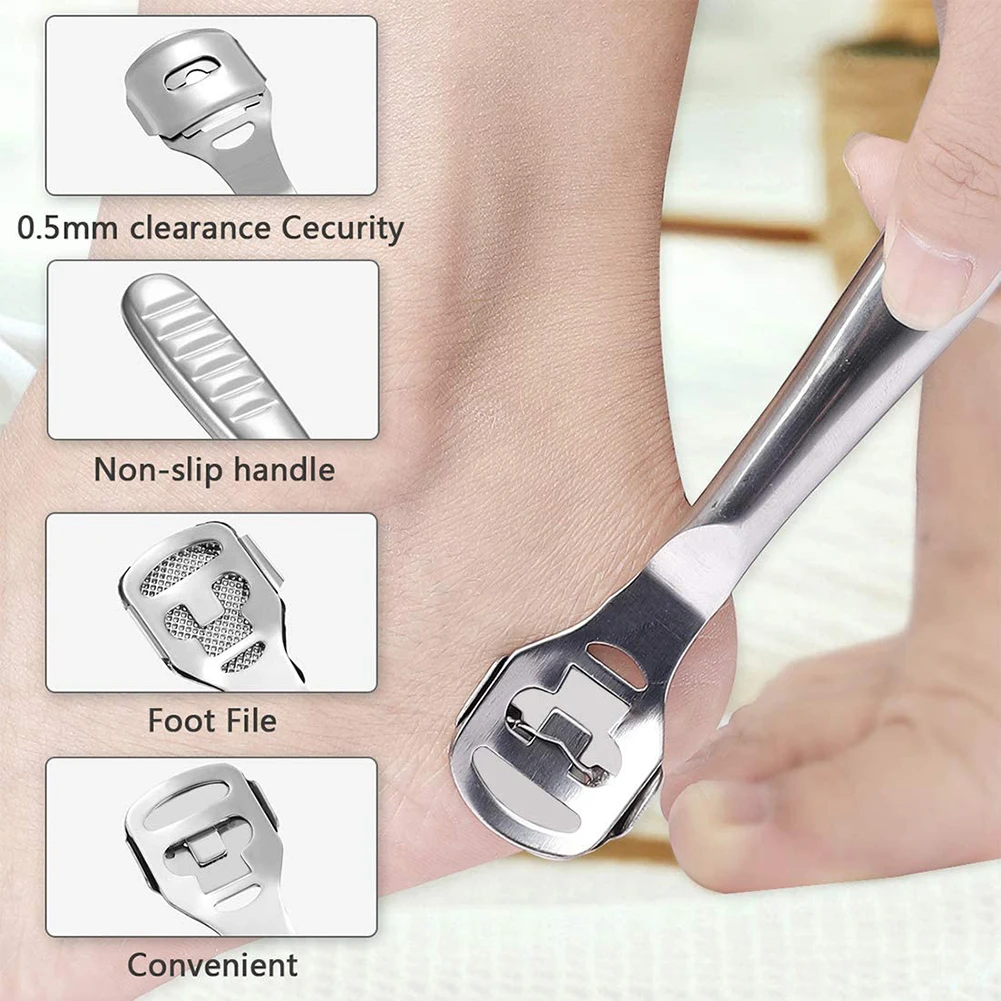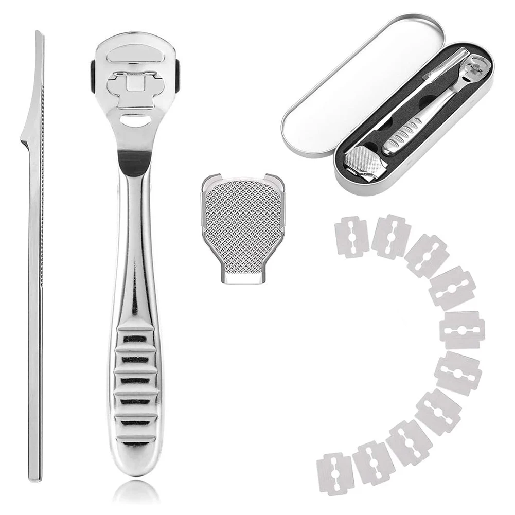 Скребок для ног, пилка для удаления твердой кожи, мозоли для ног, бритва для Педикюр Рашпиль для ног, пятка для удаления кукурузы, инструменты для ухода за ногами с 10 лезвиями для сухой влажной ноги