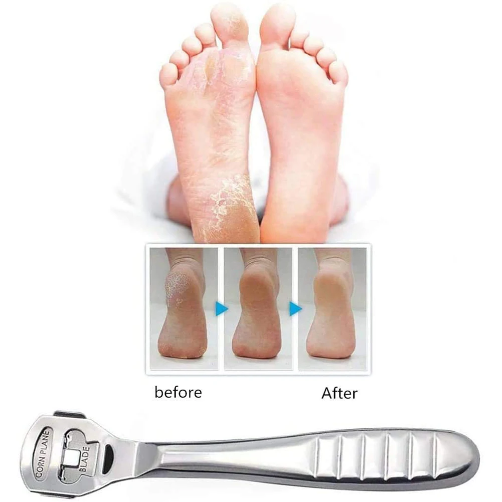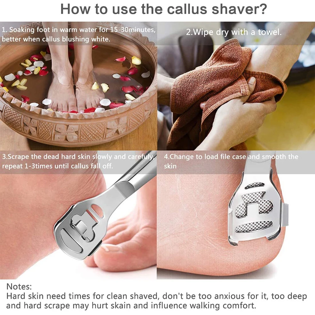 Пилка Для ног: посылка включает в себя 1 бритву для вызова из нержавеющей стали с сменной головкой для ног, 1 нож для педикюра и 10 сменных ломтиков.