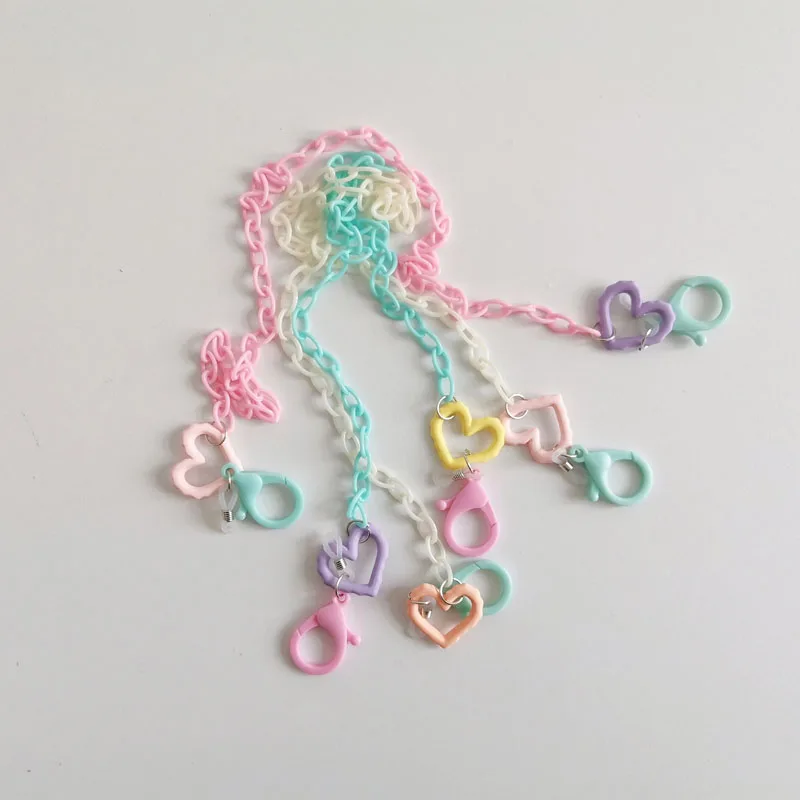 Красочные Акриловые звенья для девочек, цепочка с подвеской в виде сердца, любовного мультфильма, очков, маски, цепочки, шейные ремешки, шнурки для детей и женщин, оптовая продажа