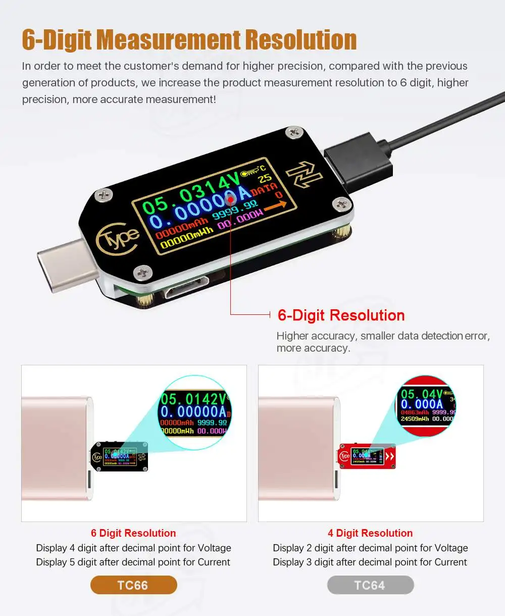 USB-тестер RIDEN TC66TC66C Type-C PD Trigger USB-C Вольтметр Амперметр Напряжение 2 направления измеритель тока мультиметр PD зарядное устройство батарея