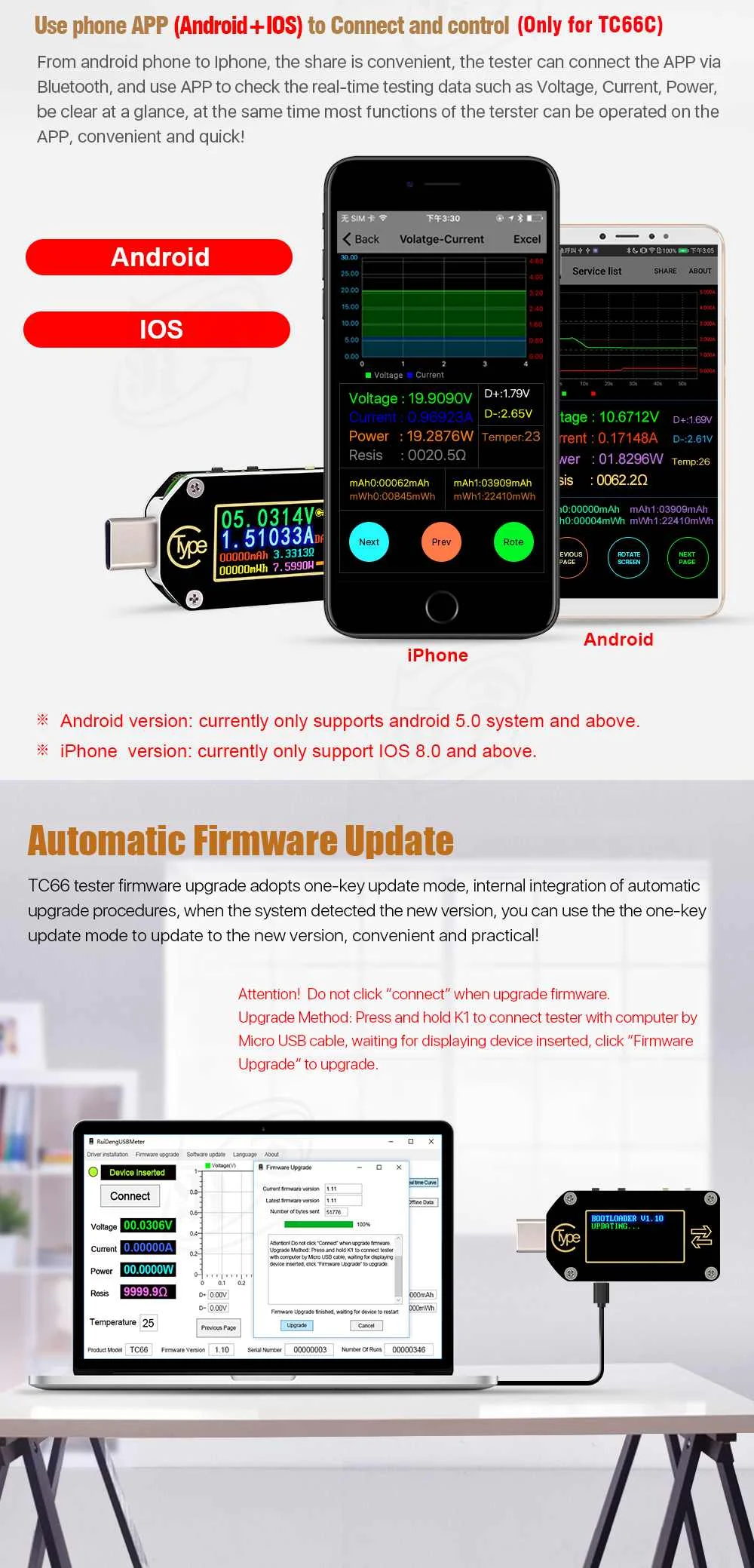 -Программное обеспечение для ПК: Работает на Win7 или выше(Программное обеспечение ПК может быть подключено только с помощью кабеля Micro-USB)-Мобильный телефон: Android 5,0 или выше; IOS8.0 выше(Мобильный телефон может быть подключен только к TC66C по bluetooth)