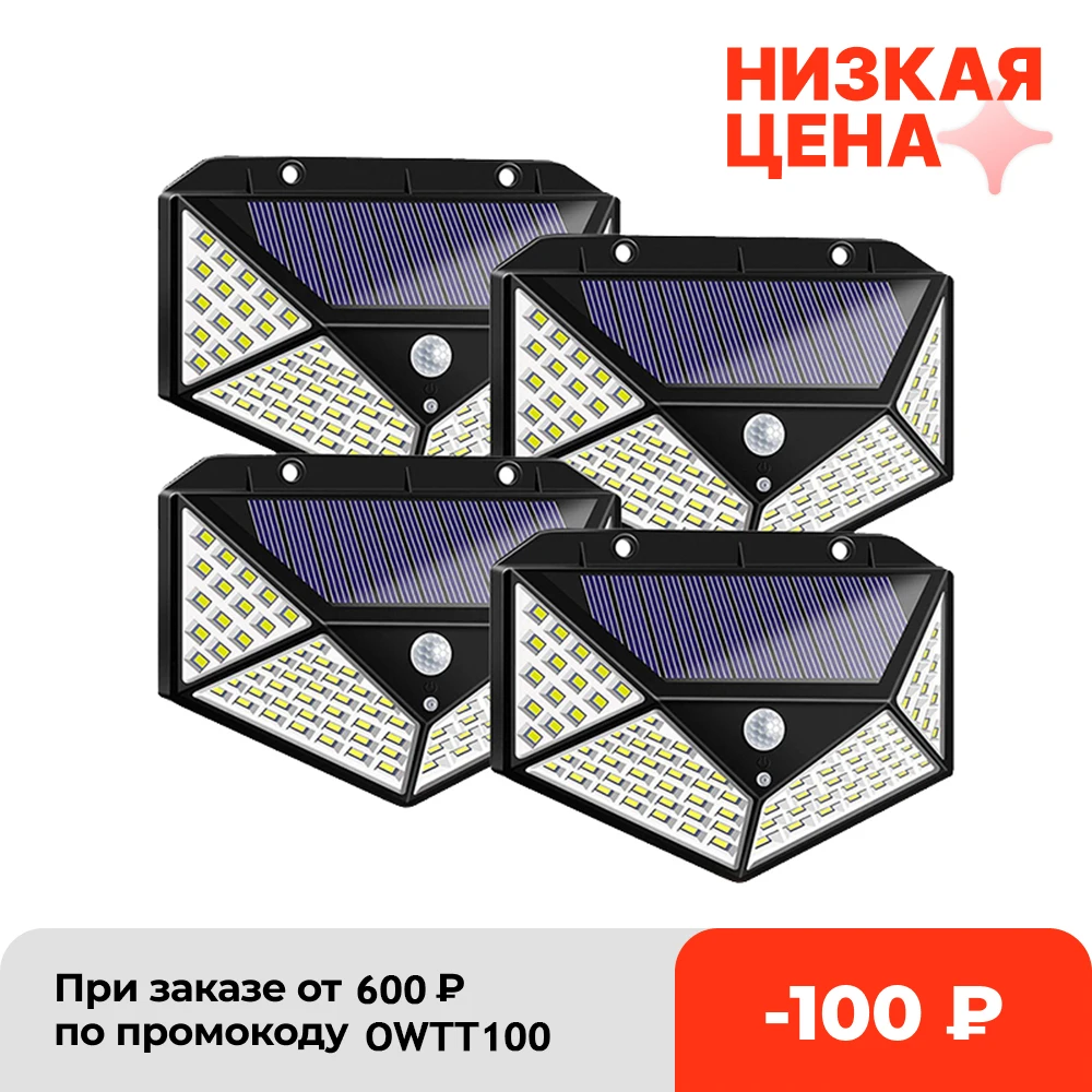 Уличная Светодиодная лампа на солнечной батарее, 3 режима, 100114 светодиодов