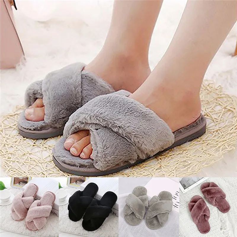 Сланцы женские зимние с искусственным мехом, теплые пушистые шлепанцы, сланцы для пола, плоская подошва, мягкие Меховые шлепанцы для дома, для дам, знаменитостей