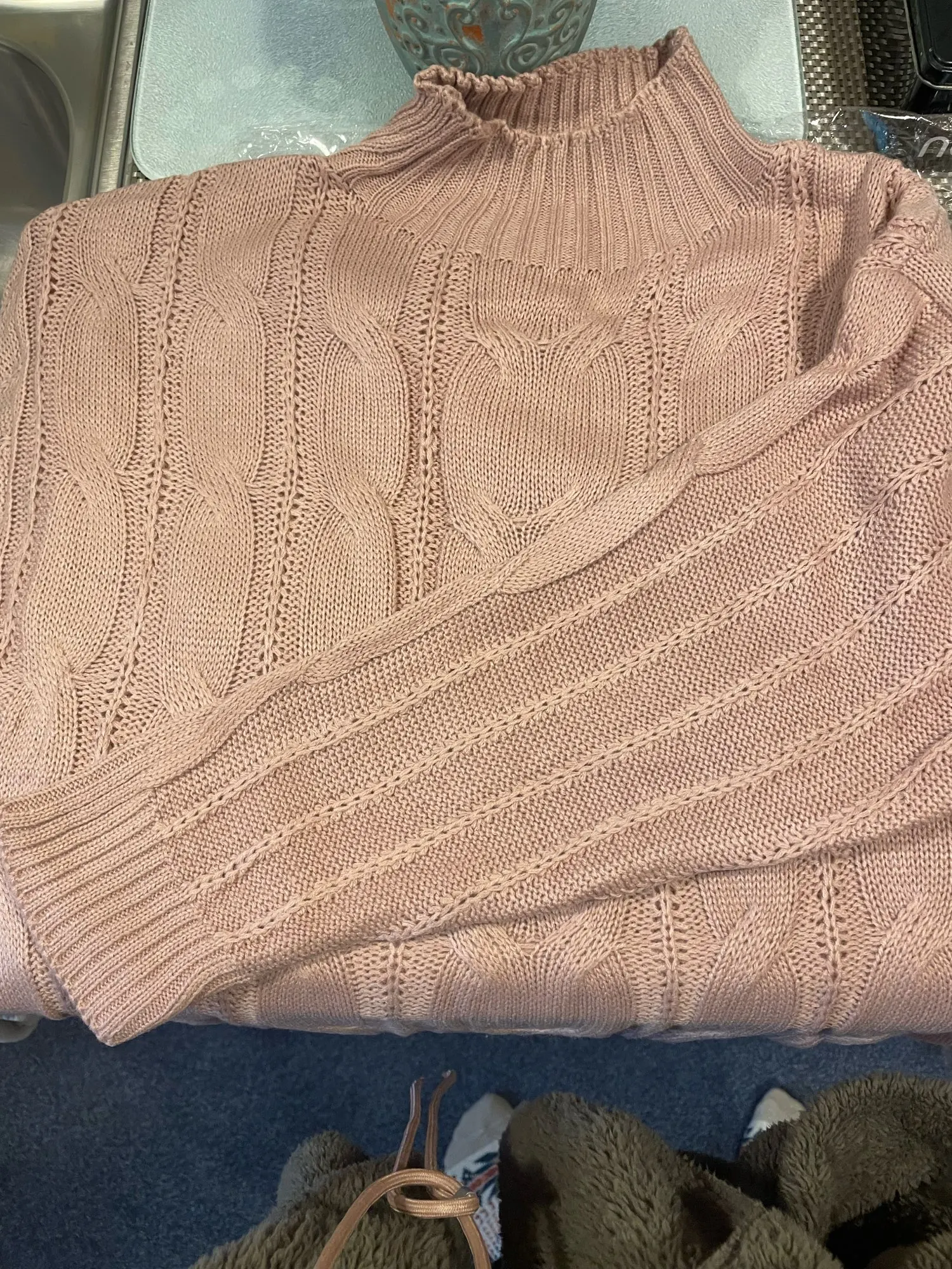 Свитер тонкий, полное не соответствие виду на фото, вязка не объемная. Спина выполнена чулочной вязкой. Нитки тонкие. Зачем выставлять нереальное фото, вводите в заблуждение. Не рекомендую.