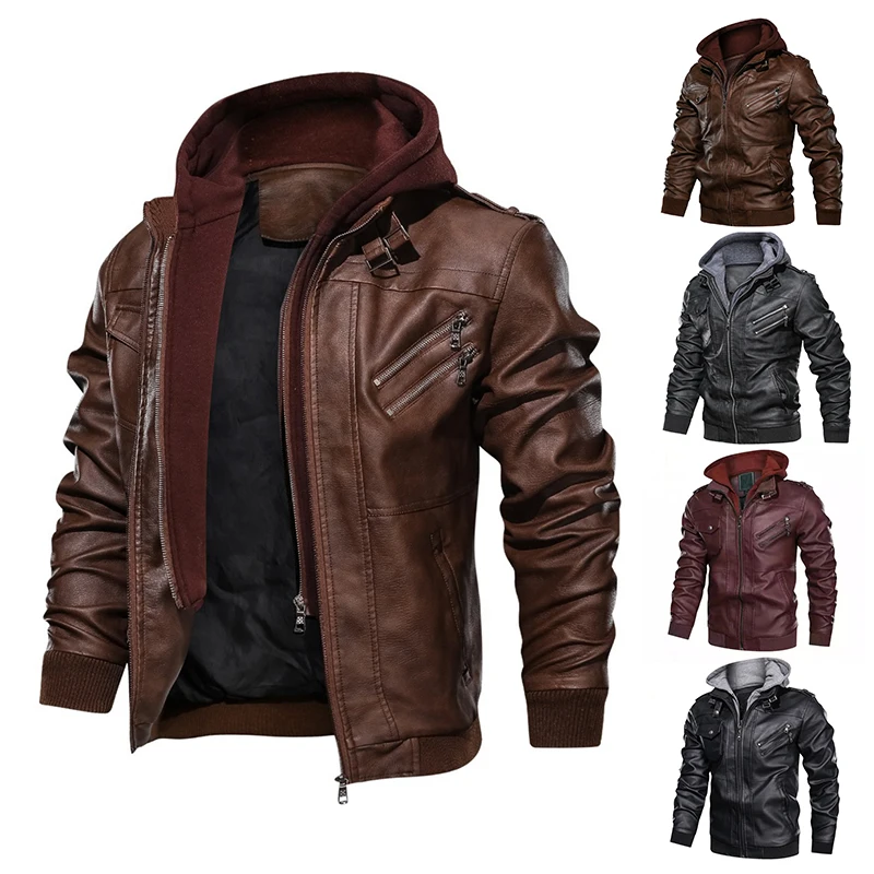 Мужская Осенняя кожаная куртка с капюшоном, мотоциклетная куртка из...