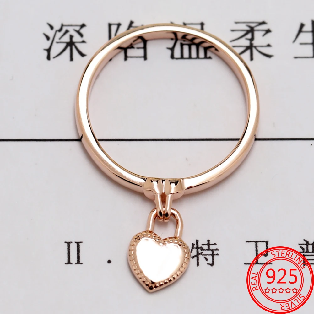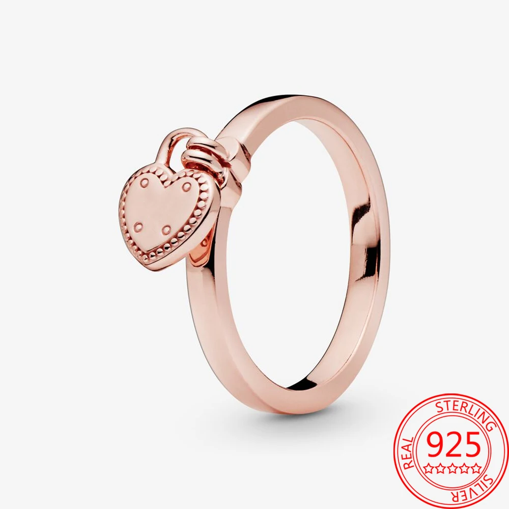 S925 Стерлинговое Серебро в форме сердца висячий замок кольцо из розового золота
