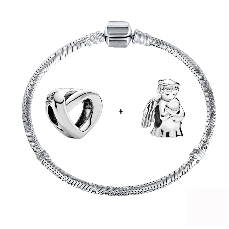 Подвеска-Шарм MC с сердцем + ангелом, бусины для женщин, подходят для модных браслетов, Изящные Ювелирные изделия, подарки для любимых